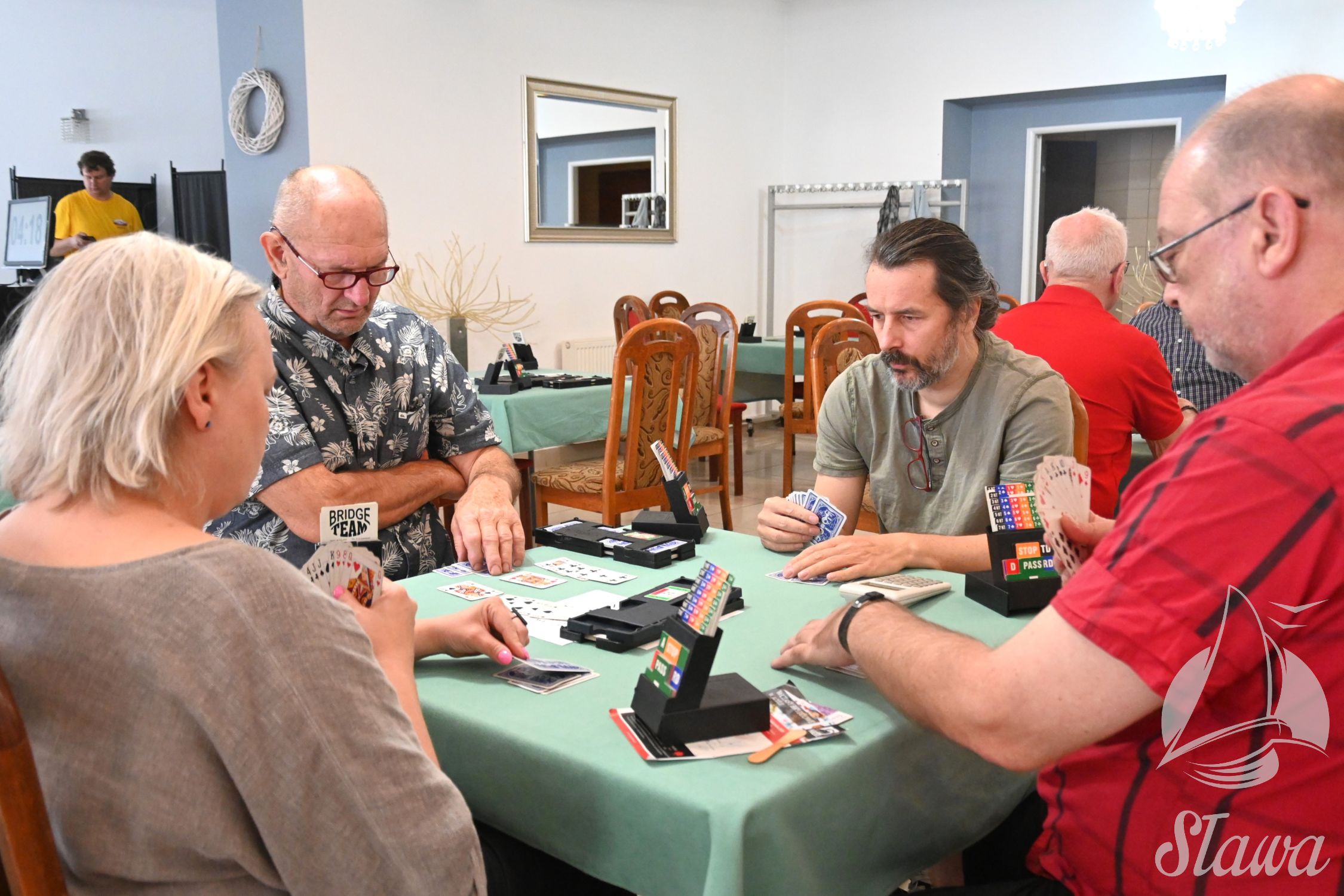 Powoli zbliżamy się do zakończenia 68. Międzynarodowego Kongresu Brydża Sportowego. Dziś w sali gimnastycznej przy Szkole im. Franciszka Niewidziajły w Sławie, rozgrywane są półfinały Mistrzostw Polski oraz Drużynowego Pucharu Lata. Finały obu turniejów odbędą się jutro. Równolegle, w Barze u Dudka trwa Turniej Wczasowy. Aktualne wyniki wszystkich rozgrywek są dostępne na oficjalnej stronie internetowej.