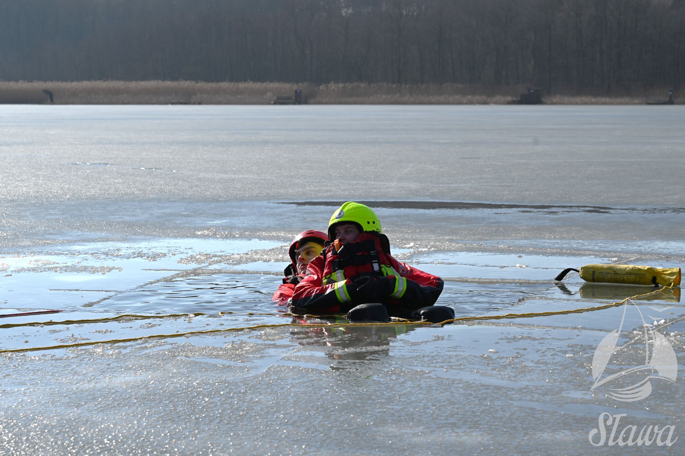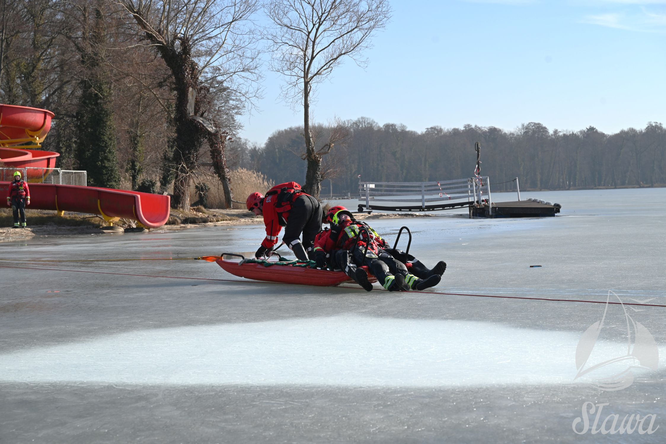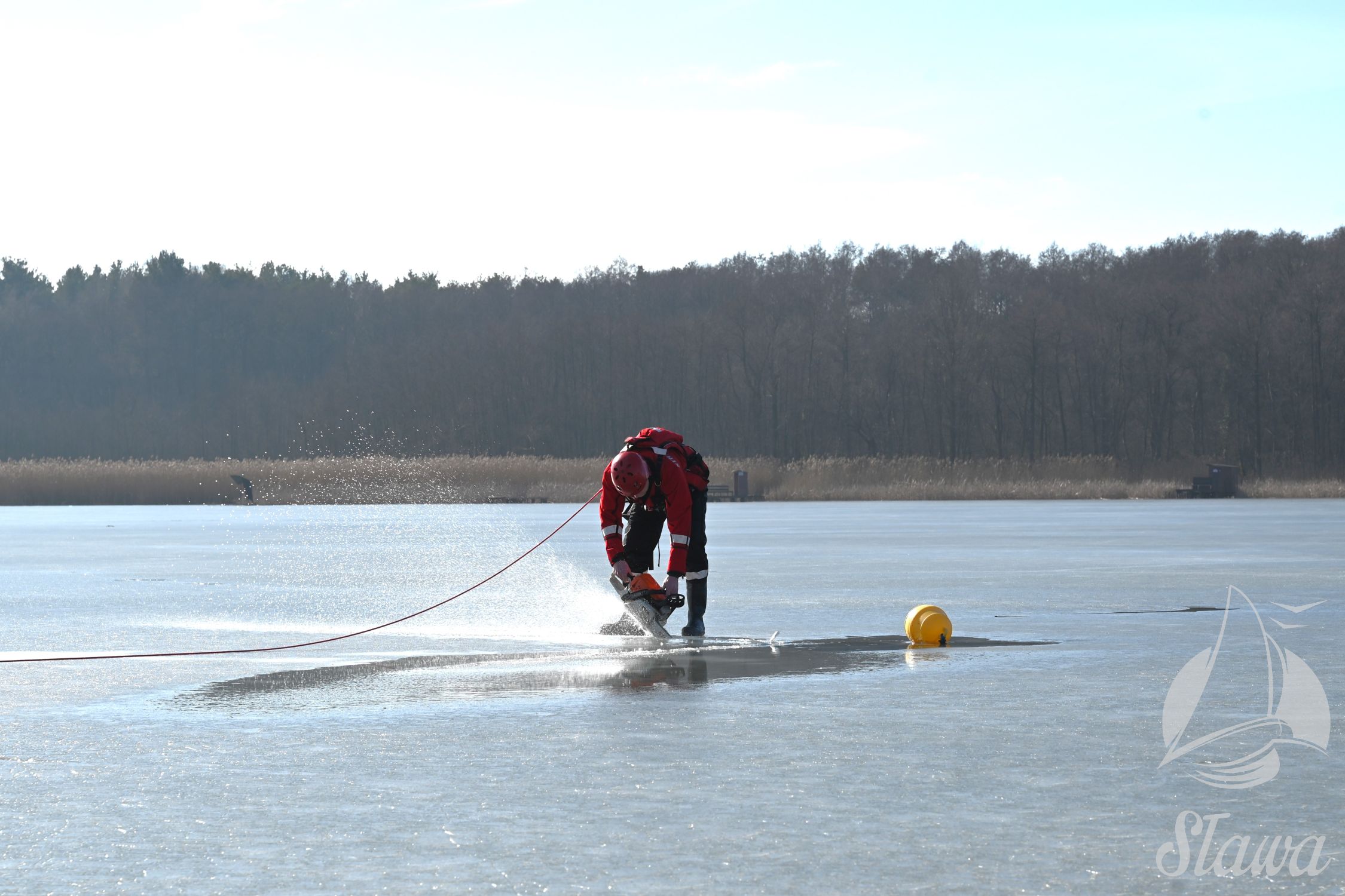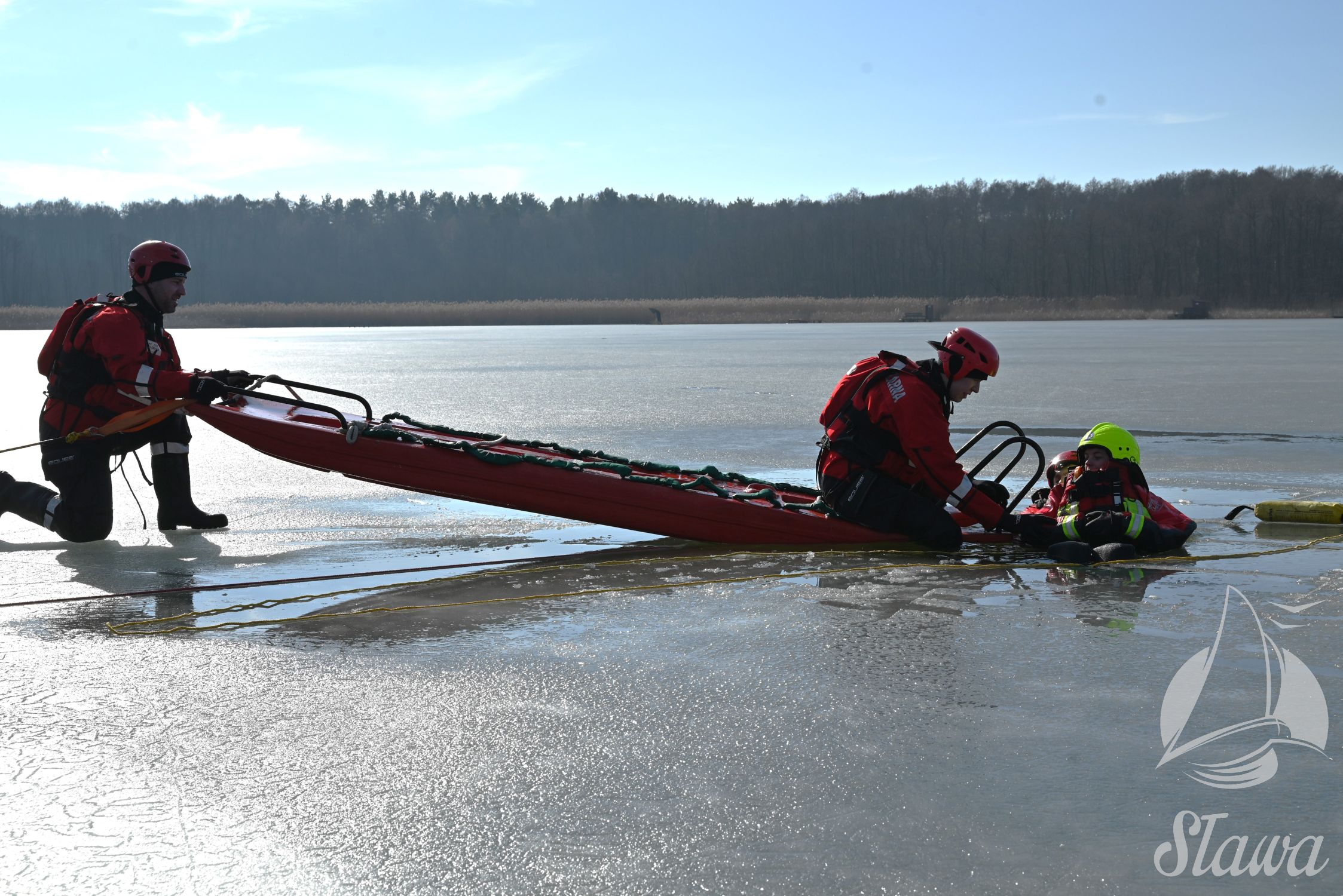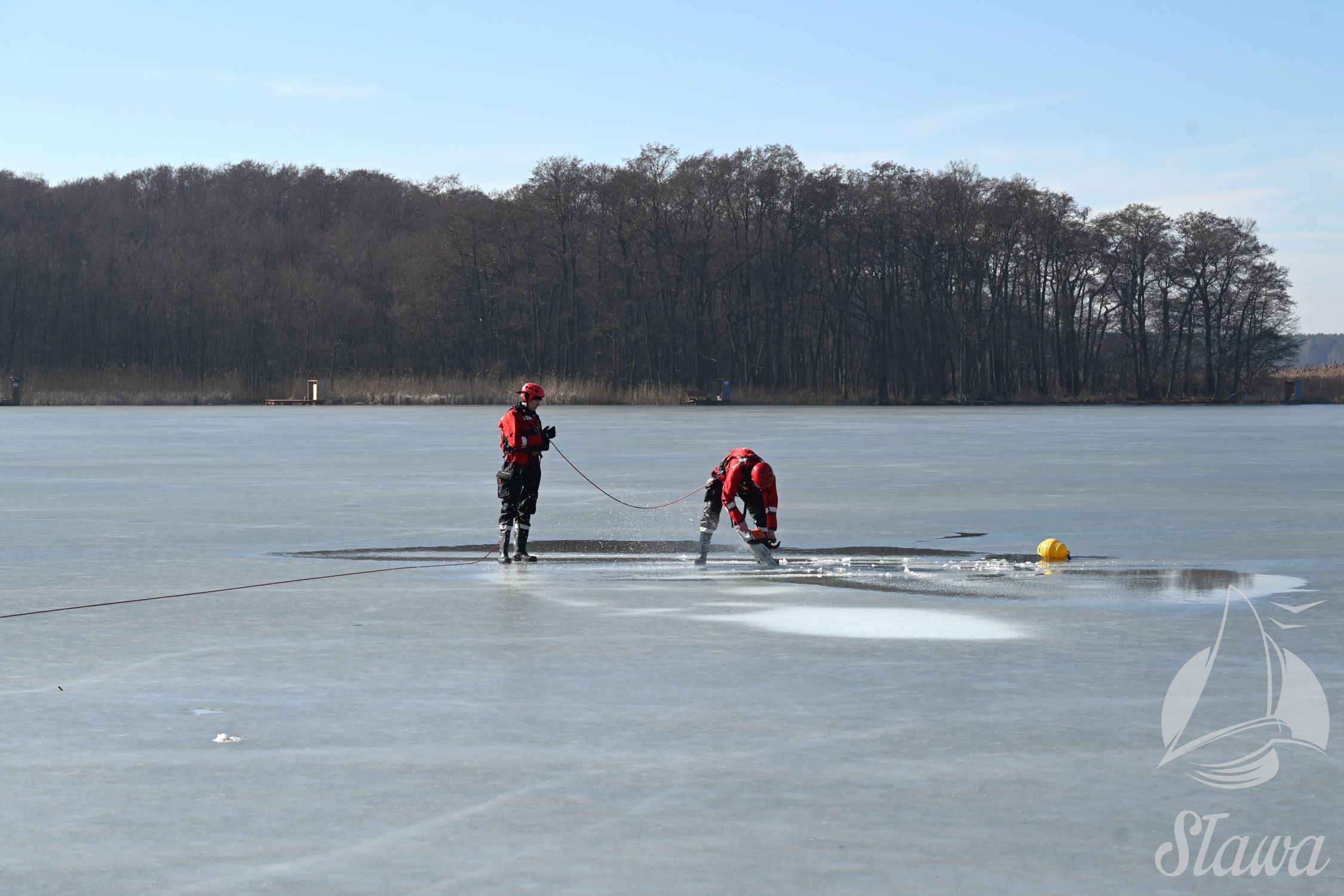 Na Jeziorze Sławskim przeprowadzono ćwiczenia lodowe z udziałem ratowników WOPR Sława oraz strażaków z Komenda Powiatowa Państwowej Straży Pożarnej we Wschowie. Scenariusz zakładał osobę uwięzioną w przeręblu. Akcja wymagała zastosowania procedur bezpiecznego wydobycia poszkodowanego z wody. Ćwiczenia obejmowały m.in. transport poszkodowanego na brzeg z użyciem sanek lodowych oraz rzutki ratunkowej.