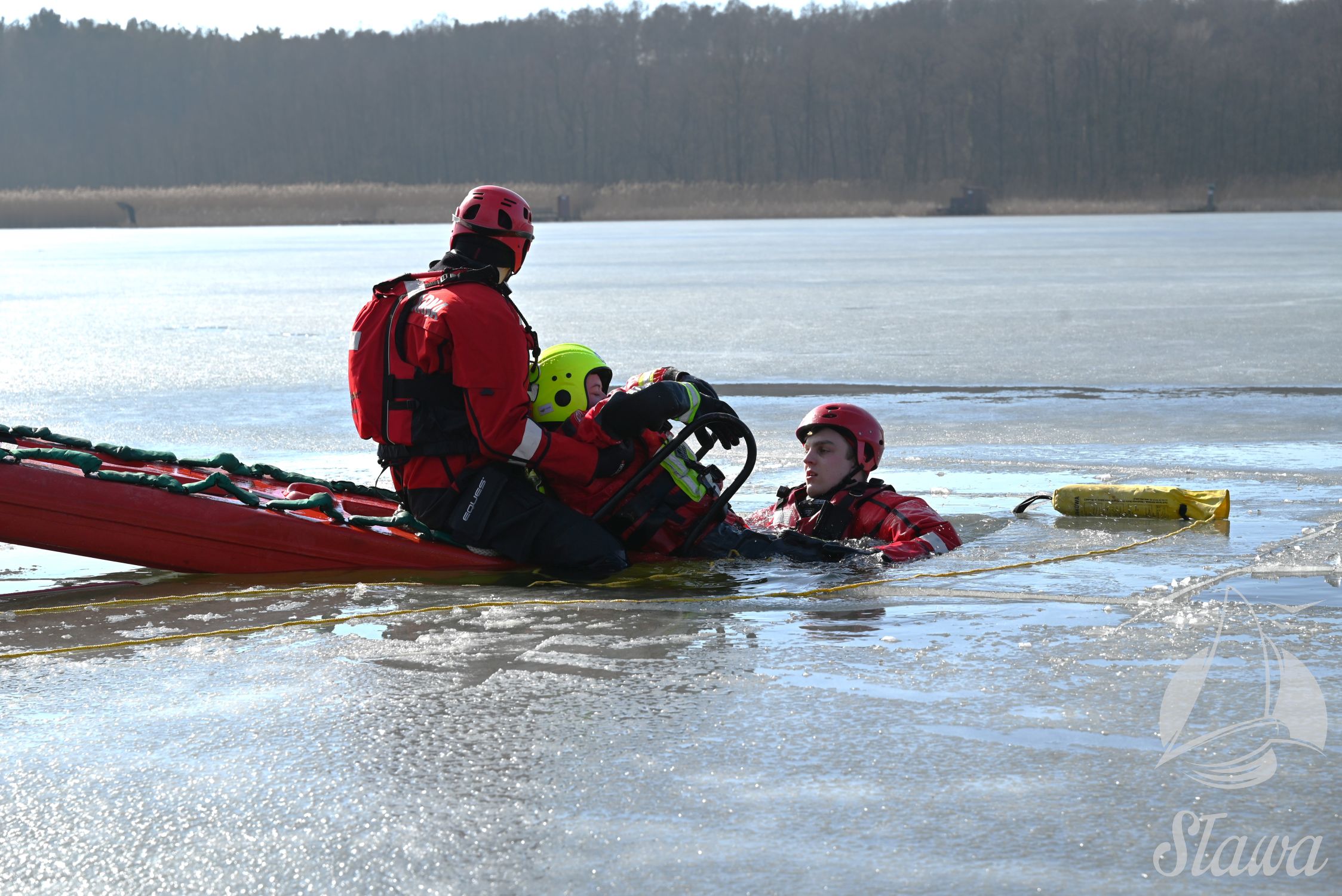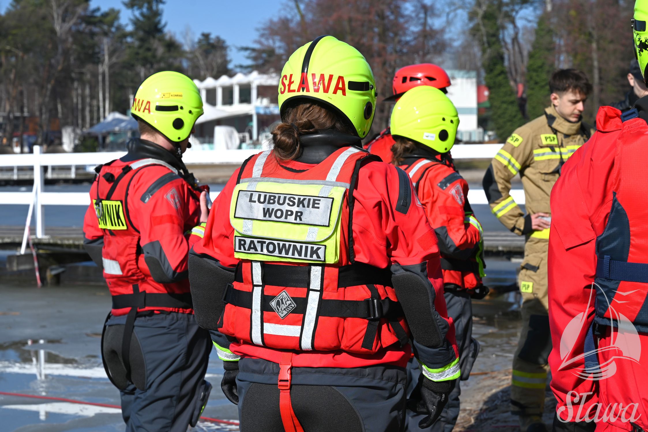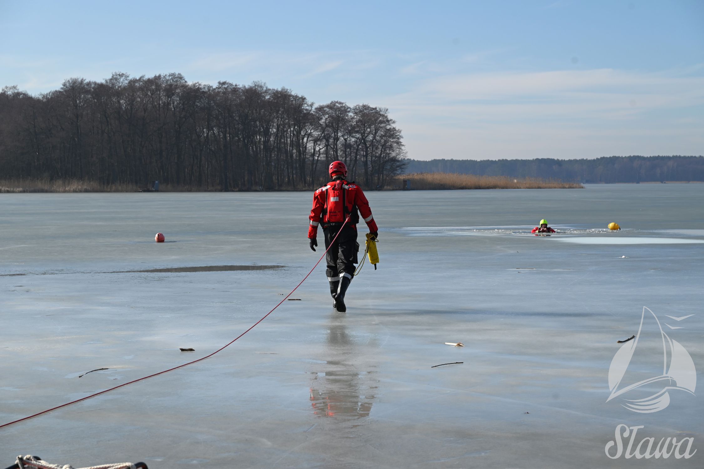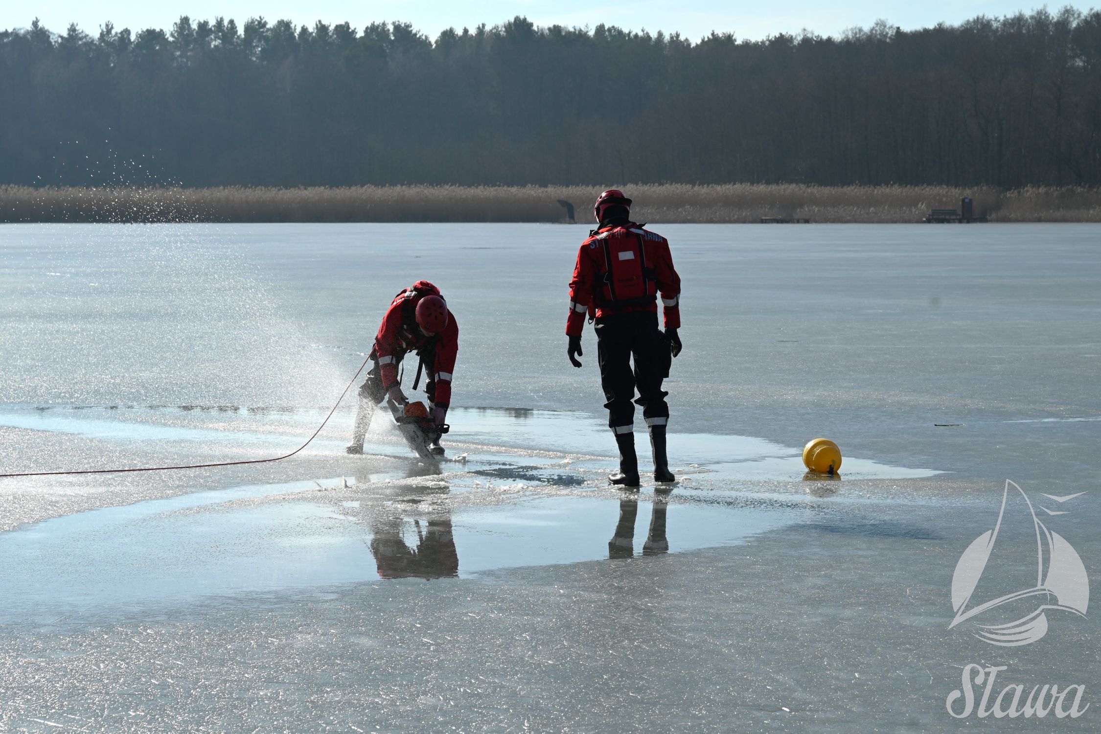 Na Jeziorze Sławskim przeprowadzono ćwiczenia lodowe z udziałem ratowników WOPR Sława oraz strażaków z Komenda Powiatowa Państwowej Straży Pożarnej we Wschowie. Scenariusz zakładał osobę uwięzioną w przeręblu. Akcja wymagała zastosowania procedur bezpiecznego wydobycia poszkodowanego z wody. Ćwiczenia obejmowały m.in. transport poszkodowanego na brzeg z użyciem sanek lodowych oraz rzutki ratunkowej.