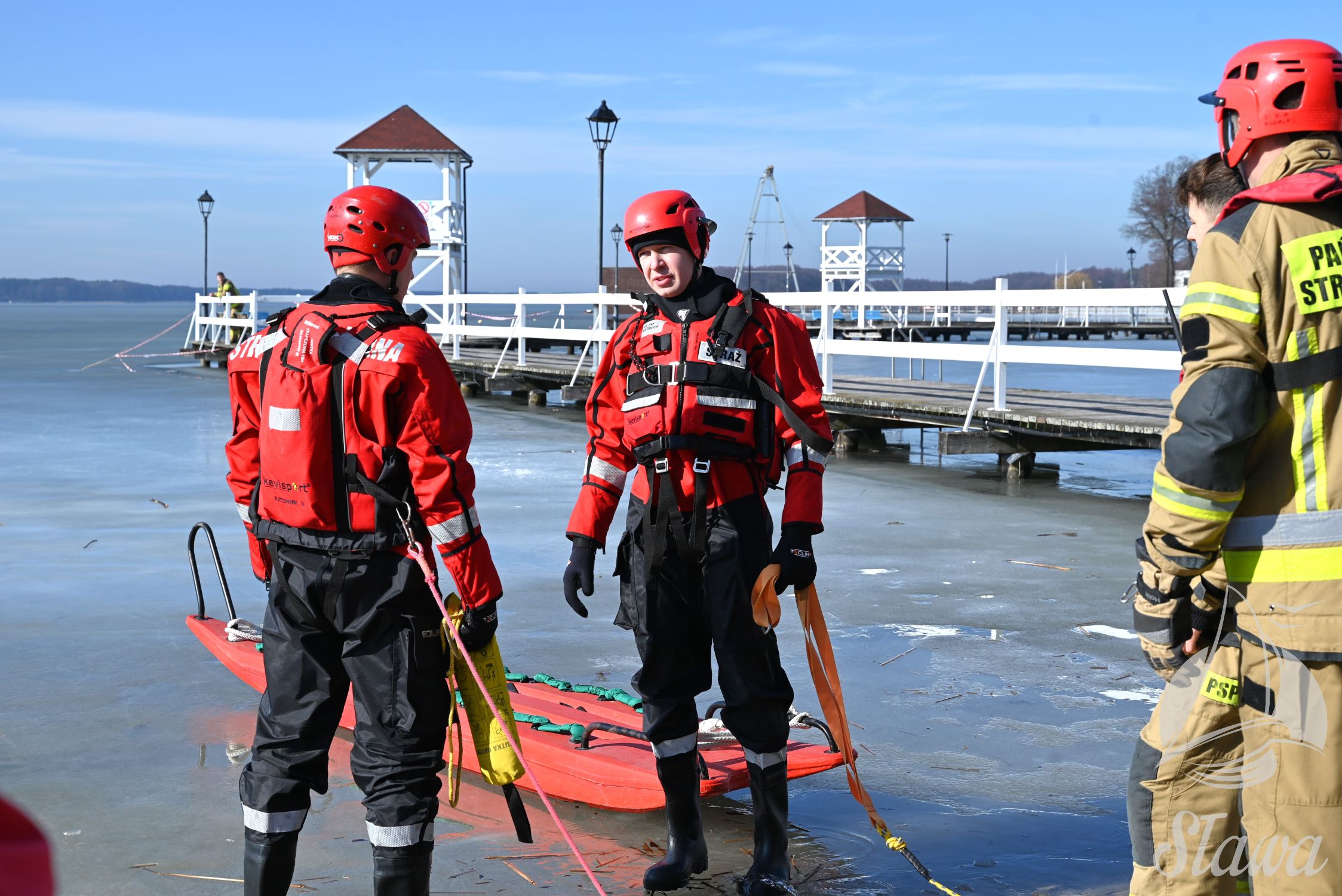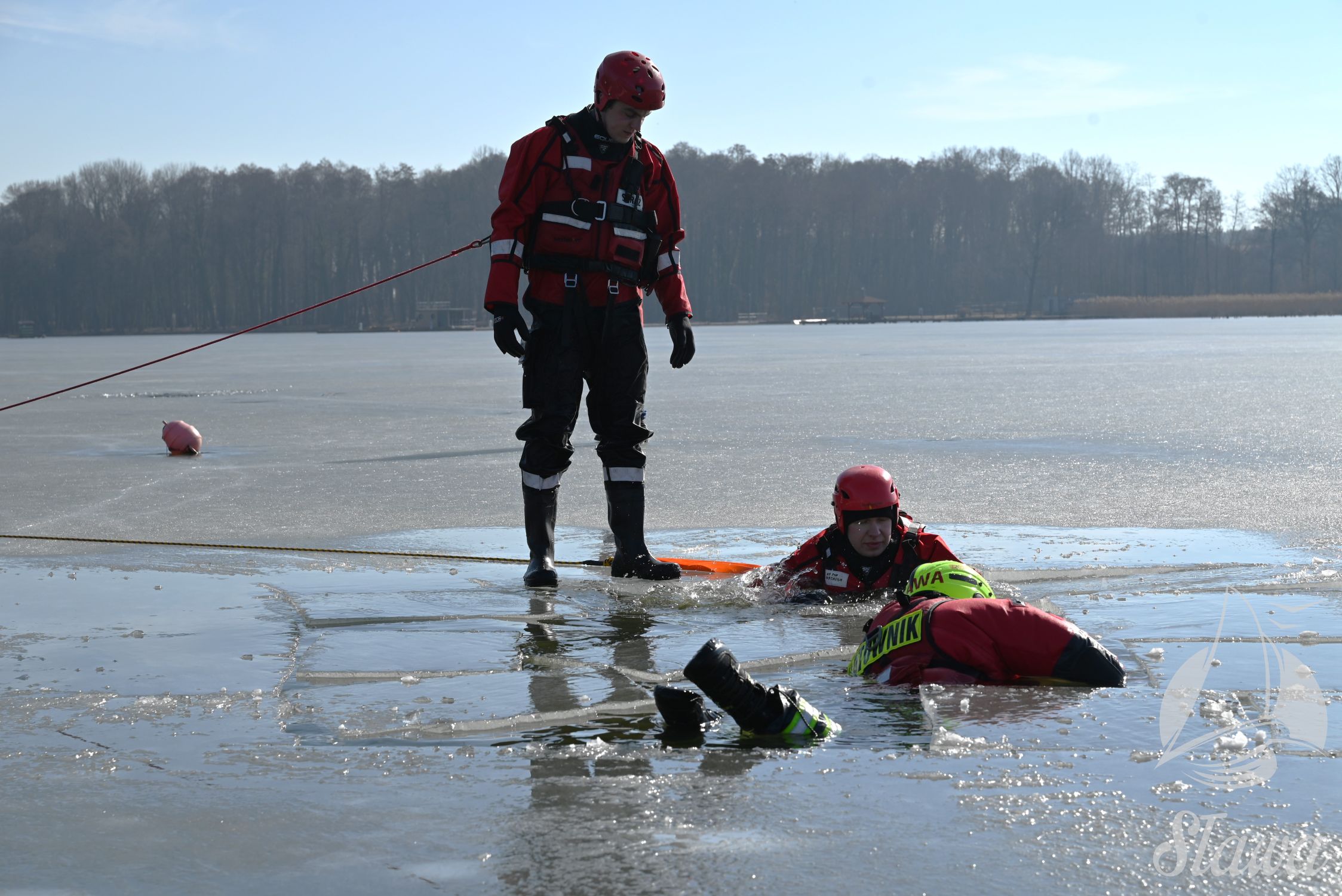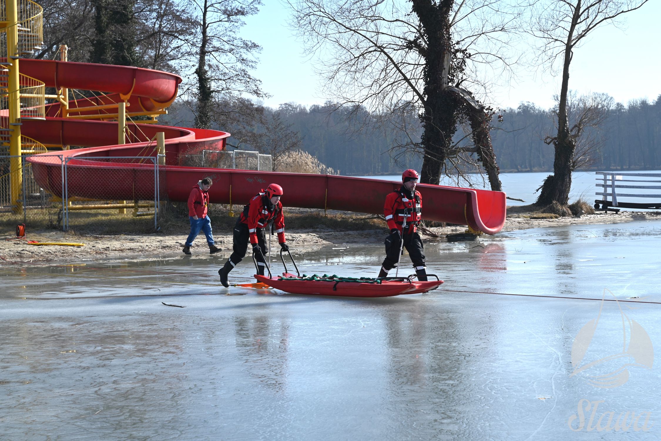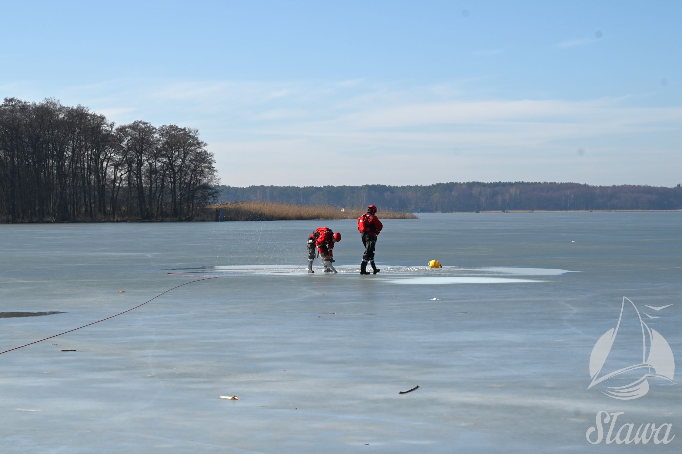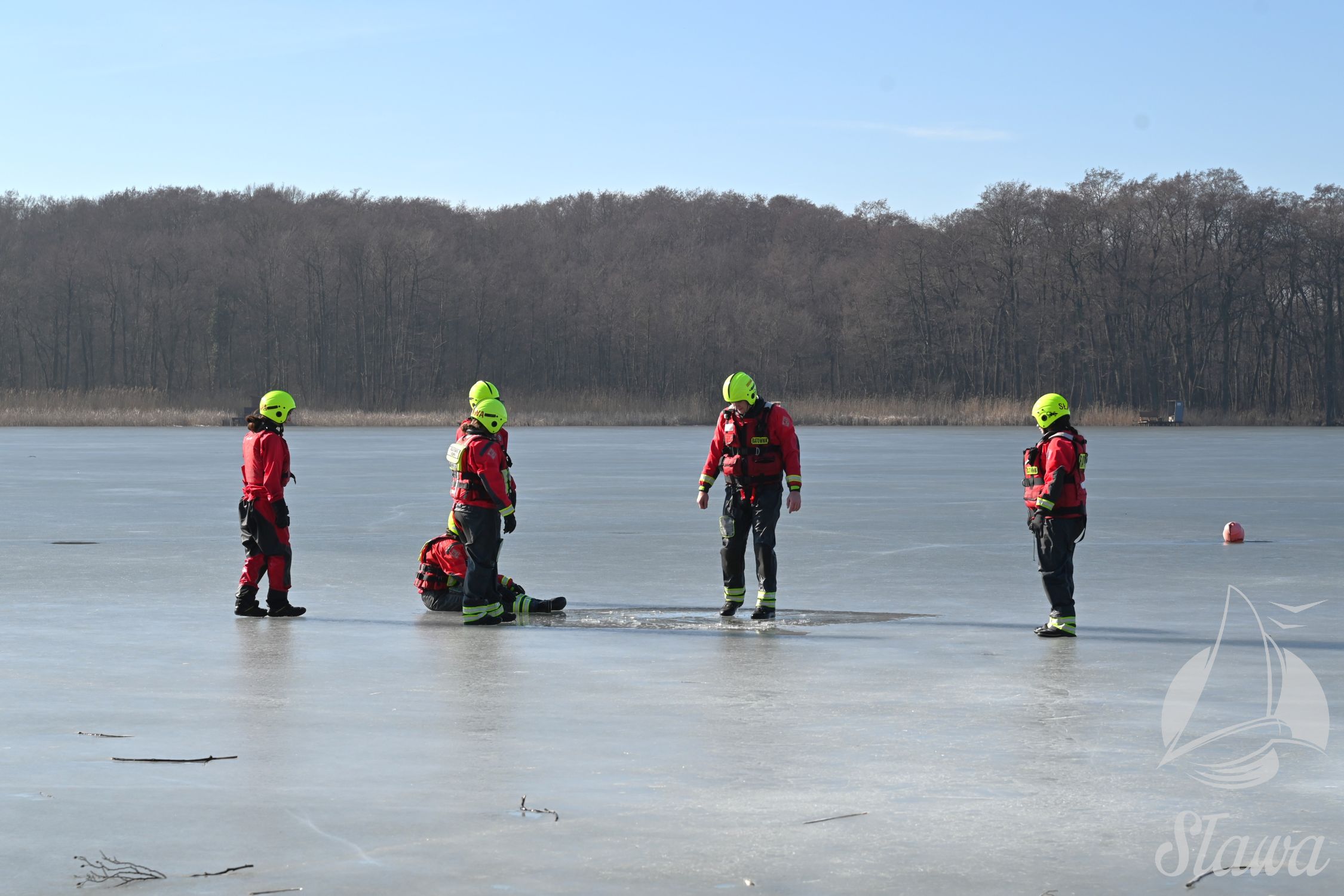 Na Jeziorze Sławskim przeprowadzono ćwiczenia lodowe z udziałem ratowników WOPR Sława oraz strażaków z Komenda Powiatowa Państwowej Straży Pożarnej we Wschowie. Scenariusz zakładał osobę uwięzioną w przeręblu. Akcja wymagała zastosowania procedur bezpiecznego wydobycia poszkodowanego z wody. Ćwiczenia obejmowały m.in. transport poszkodowanego na brzeg z użyciem sanek lodowych oraz rzutki ratunkowej.