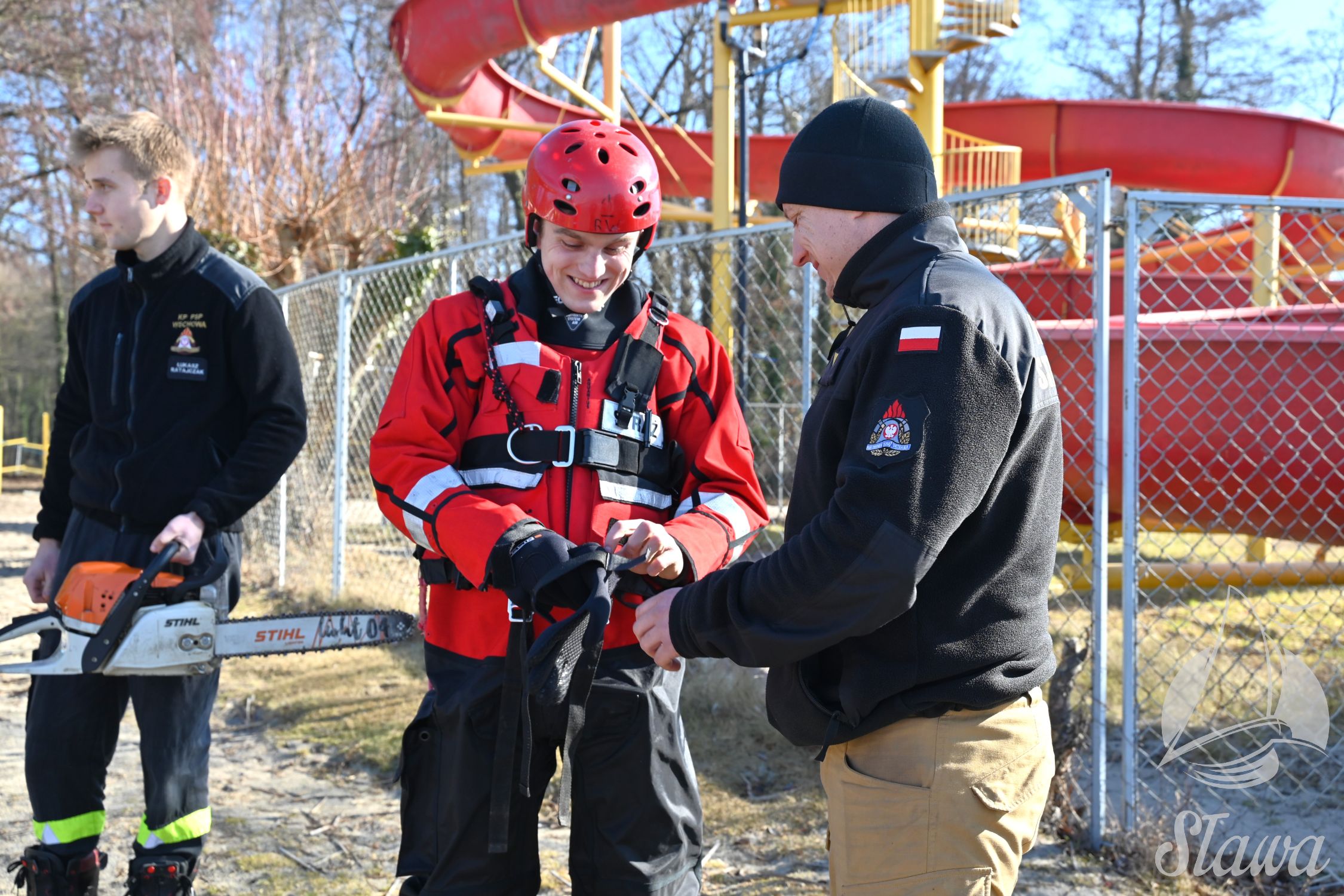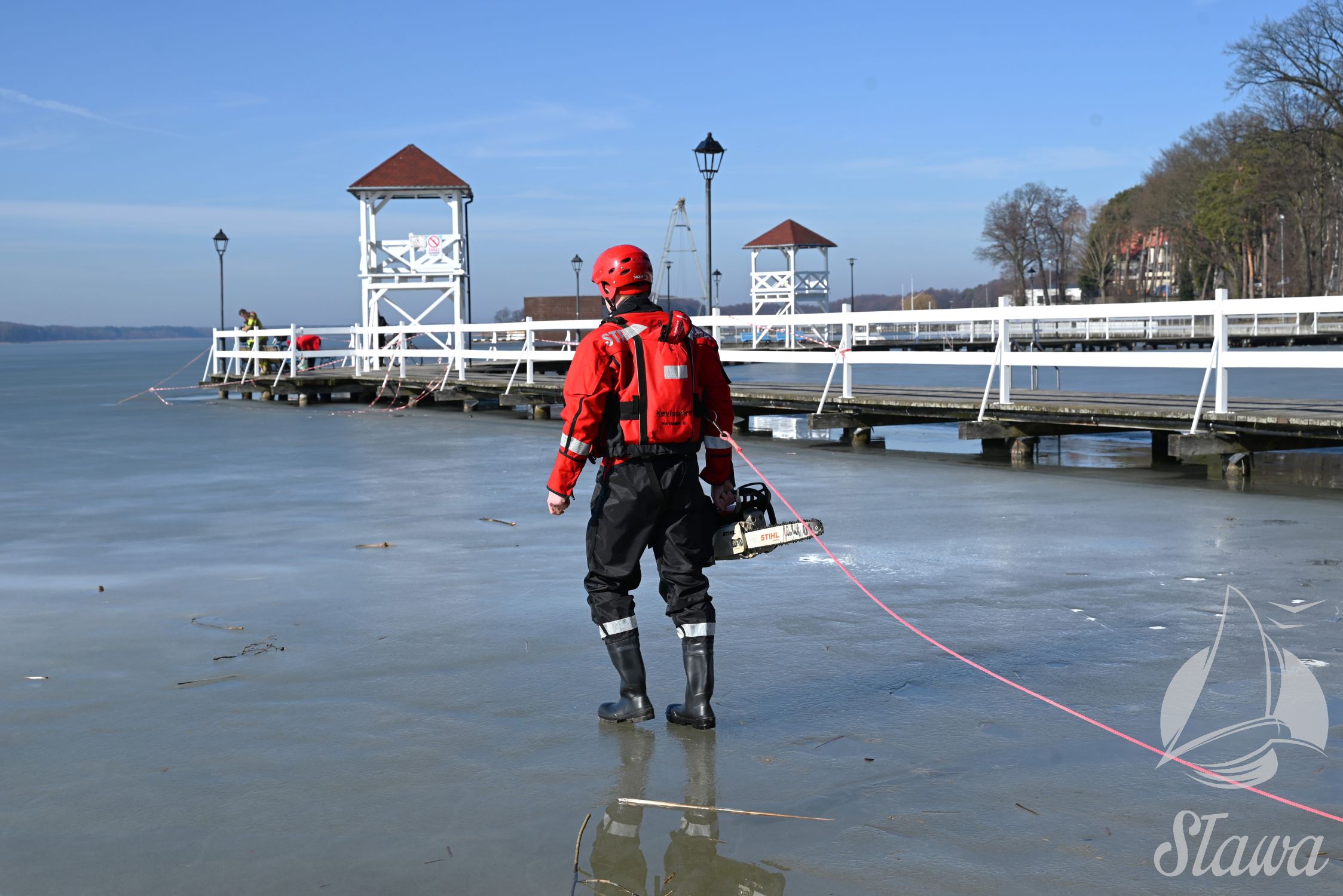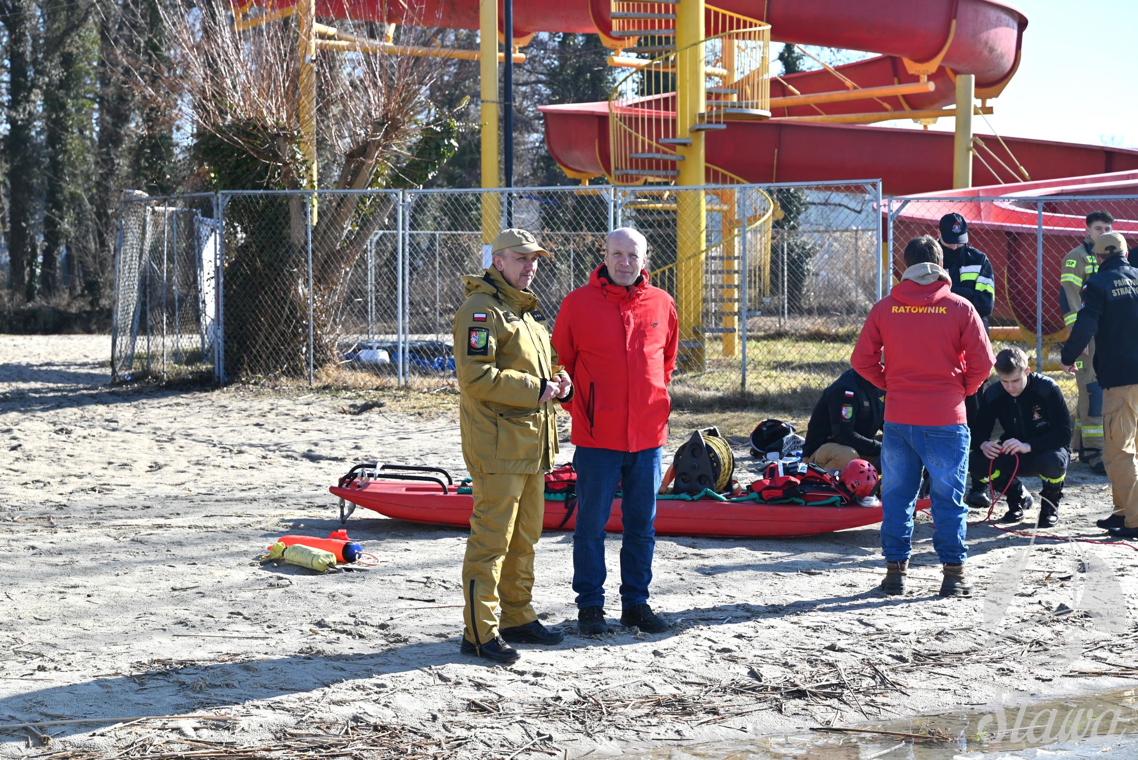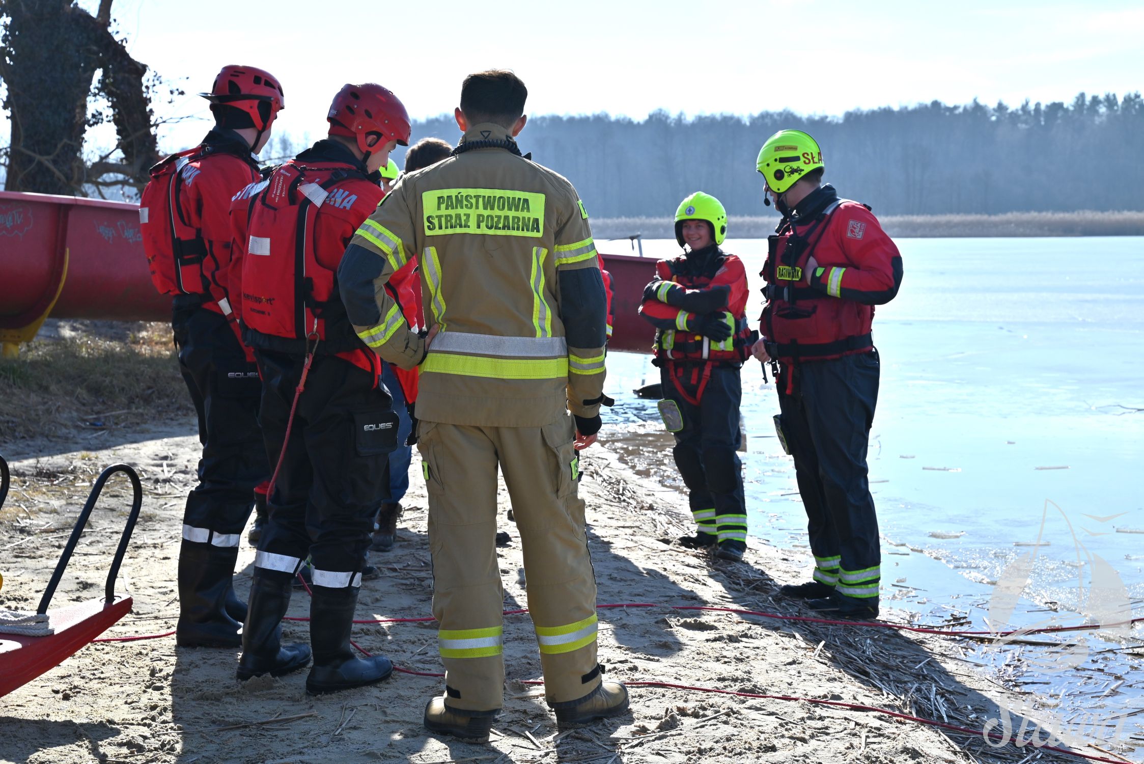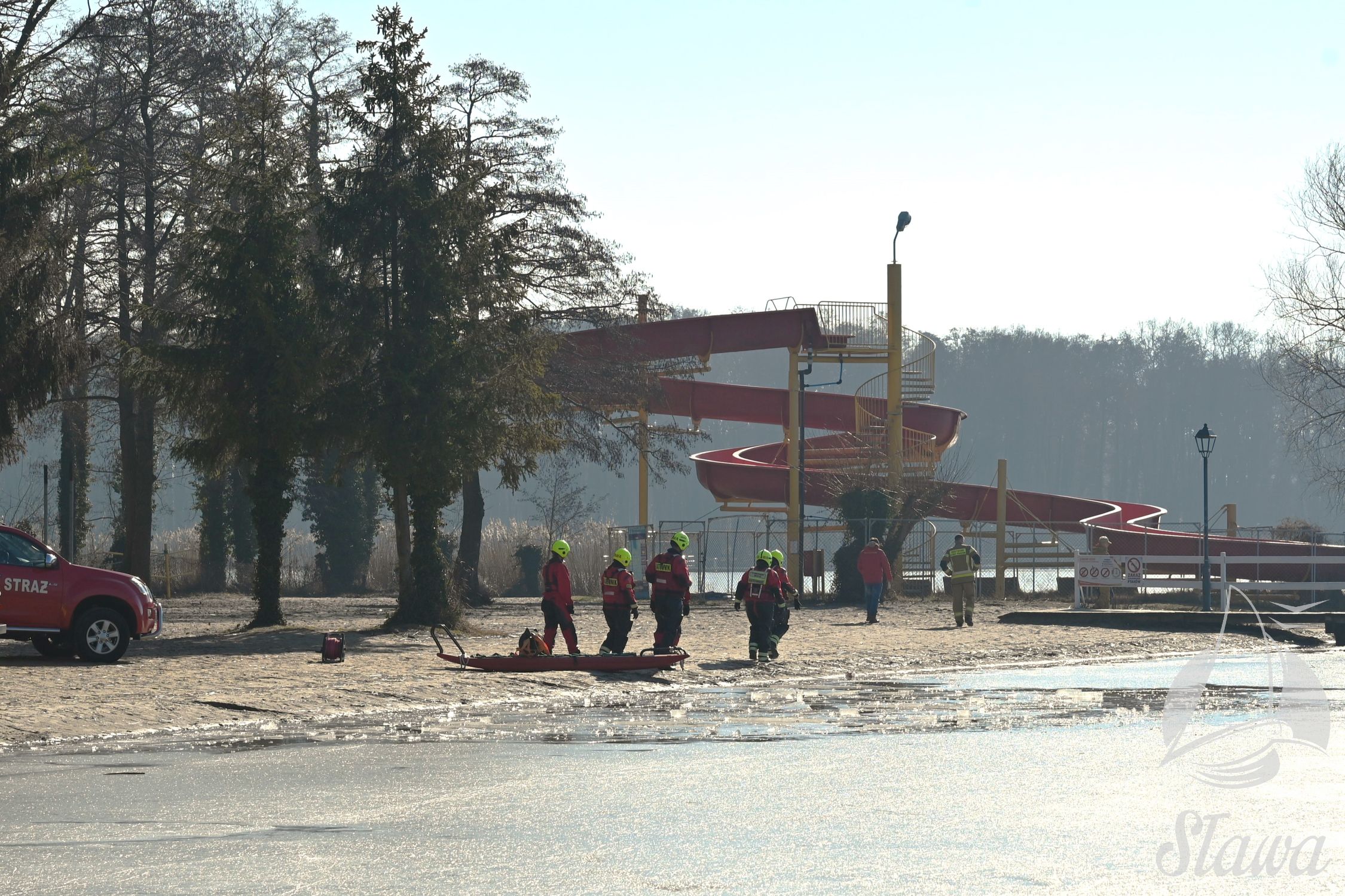 Na Jeziorze Sławskim przeprowadzono ćwiczenia lodowe z udziałem ratowników WOPR Sława oraz strażaków z Komenda Powiatowa Państwowej Straży Pożarnej we Wschowie. Scenariusz zakładał osobę uwięzioną w przeręblu. Akcja wymagała zastosowania procedur bezpiecznego wydobycia poszkodowanego z wody. Ćwiczenia obejmowały m.in. transport poszkodowanego na brzeg z użyciem sanek lodowych oraz rzutki ratunkowej.