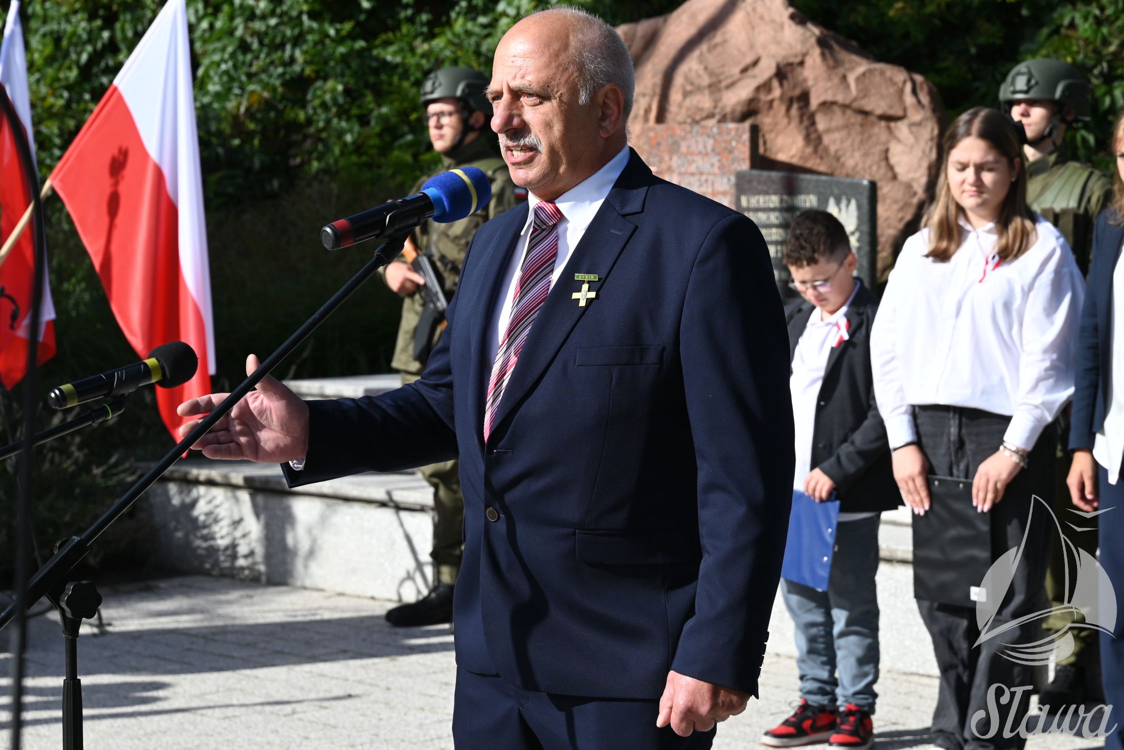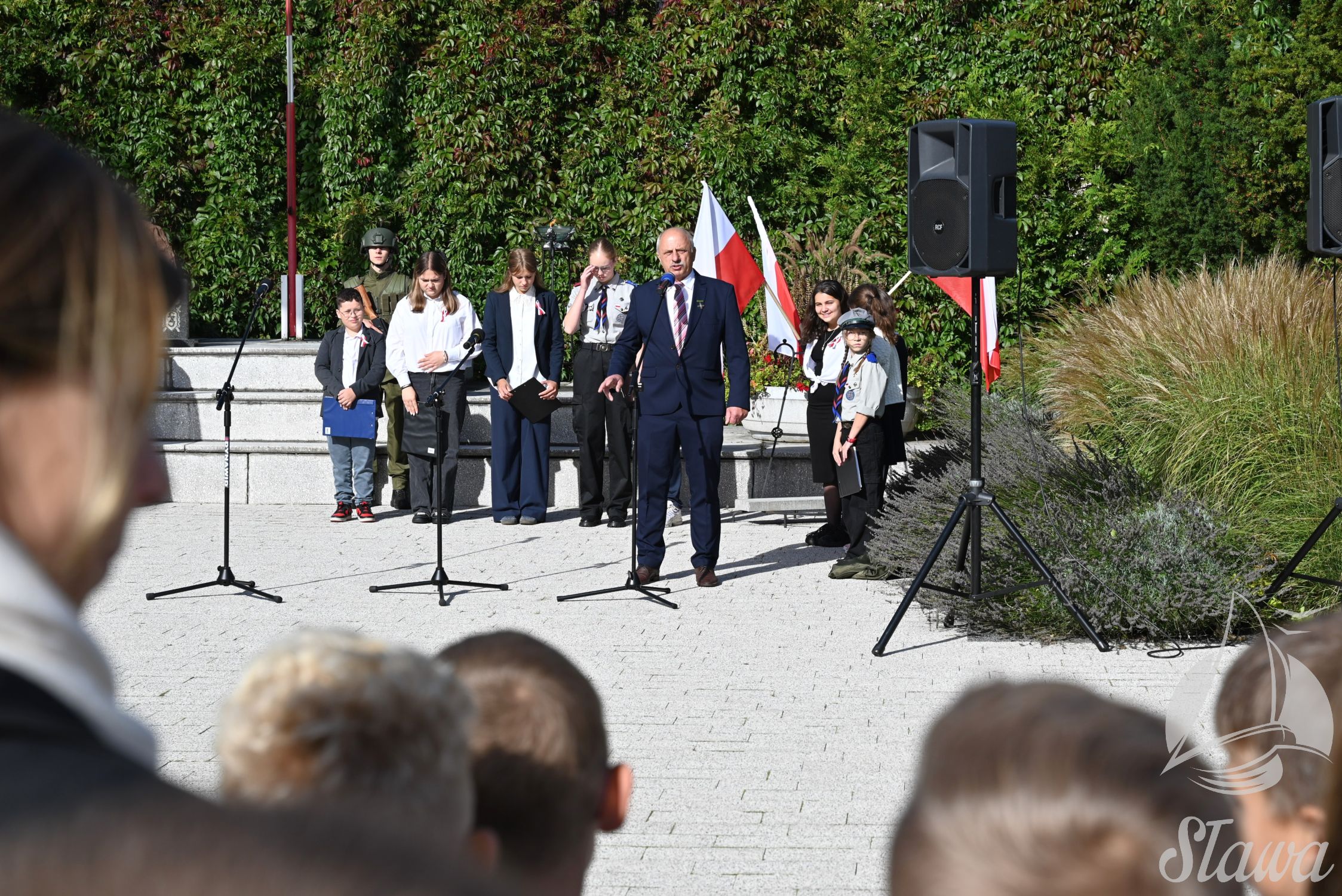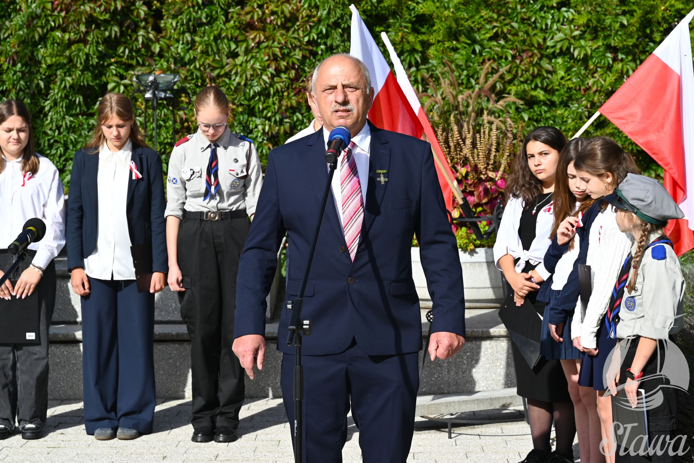 W rocznicę tych tragicznych wydarzeń mieszkańcy Sławy i okolic zebrali się na Placu Pamięci Narodowej, aby oddać hołd obrońcom polskich granic oraz ofiarom sowieckiej agresji. Uczniowie Szkoły Podstawowej im. Franciszka Niewidziajły w Sławie przygotowali wzruszający program słowno-muzyczny, który przybliżył uczestnikom okoliczności tamtych dramatycznych dni. Poruszające przemówienie wygłosił nauczyciel historii Roman Frankiewicz, przypominając wydarzenia sprzed 86 lat i zwracając uwagę na niebezpieczeństwo dezinformacji we współczesnym świecie – zwłaszcza dziś, gdy za naszą wschodnią granicą toczy się wojna, a Polska poddawana jest licznym próbom. Podkreślił, jak wielką wartość ma pamięć historyczna, szczególnie dla młodego pokolenia i przyszłości naszego narodu. Na zakończenie swojego wystąpienia przekazał uczniom klasy mundurowej Zespołu Szkół Ponadpodstawowych w Sławie urnę z ziemią z miejsc uświęconych krwią polskich bohaterów – z cmentarzy w Katyniu, Miednoje i Bykowni.