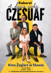 Czworo ludzi, ogromny urok i ponad 20 lat rozśmieszania Polski. teraz spróbują rozbawić mieszkańców Sławy! Ich urok i wdzięk sceniczny sprawiają, że każda scena staje się niezapomniana. W październiku na scenie Kina Żeglarz wystąpi Kabaret Czesuaf.