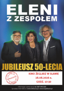 Pod koniec sierpnia w Kinie Żeglarz w Sławie wystąpi Eleni wraz z zespołem. Artystka będzie świętować na scenie wyjątkowy jubileusz 50-lecia swojej działalności muzycznej. Publiczność czeka niezwykła podróż przez największe przeboje, które towarzyszą słuchaczom od pół wieku.