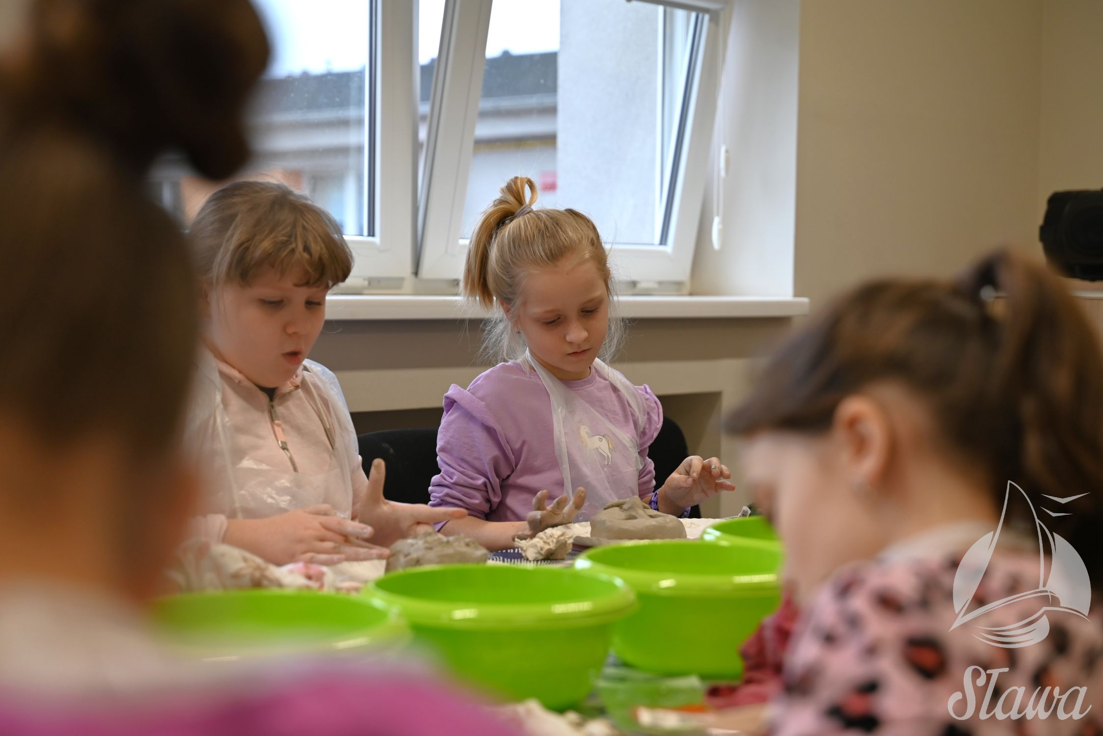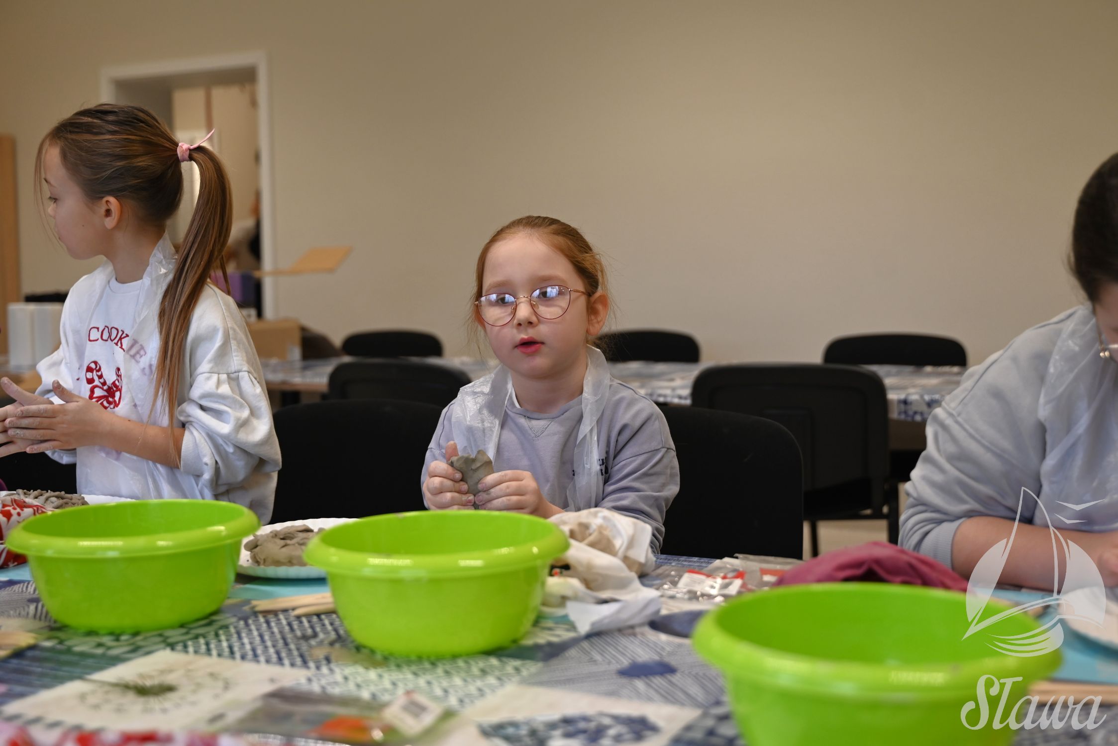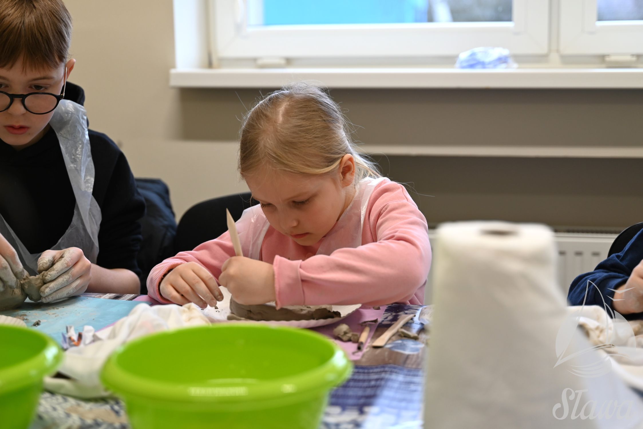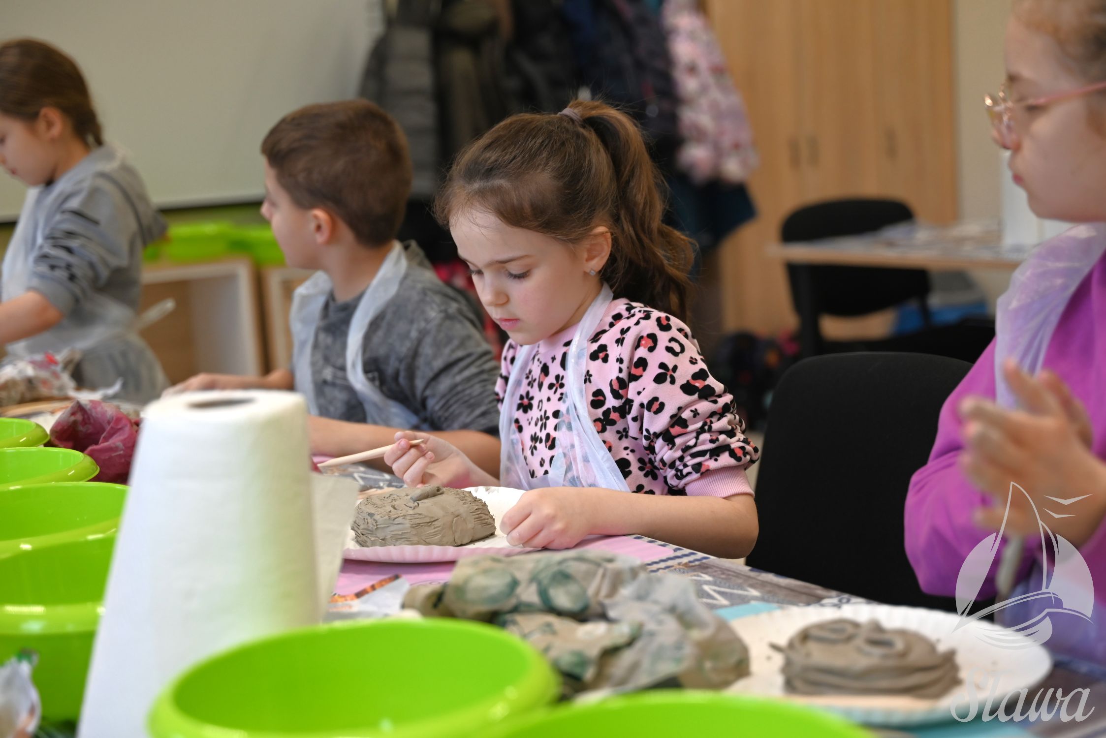 Kolejny dzień ferii przyniósł nowe wyzwania w Domu Kultury w Sławie! Dziś dzieci pracowały z gliną. Ich zadaniem było ulepić swoje ulubione postacie z bajek i bohaterów. Było przy tym dużo śmiechu, zabawy i pracy. Każdy starał się, żeby jego figurka wyszła jak najlepiej.