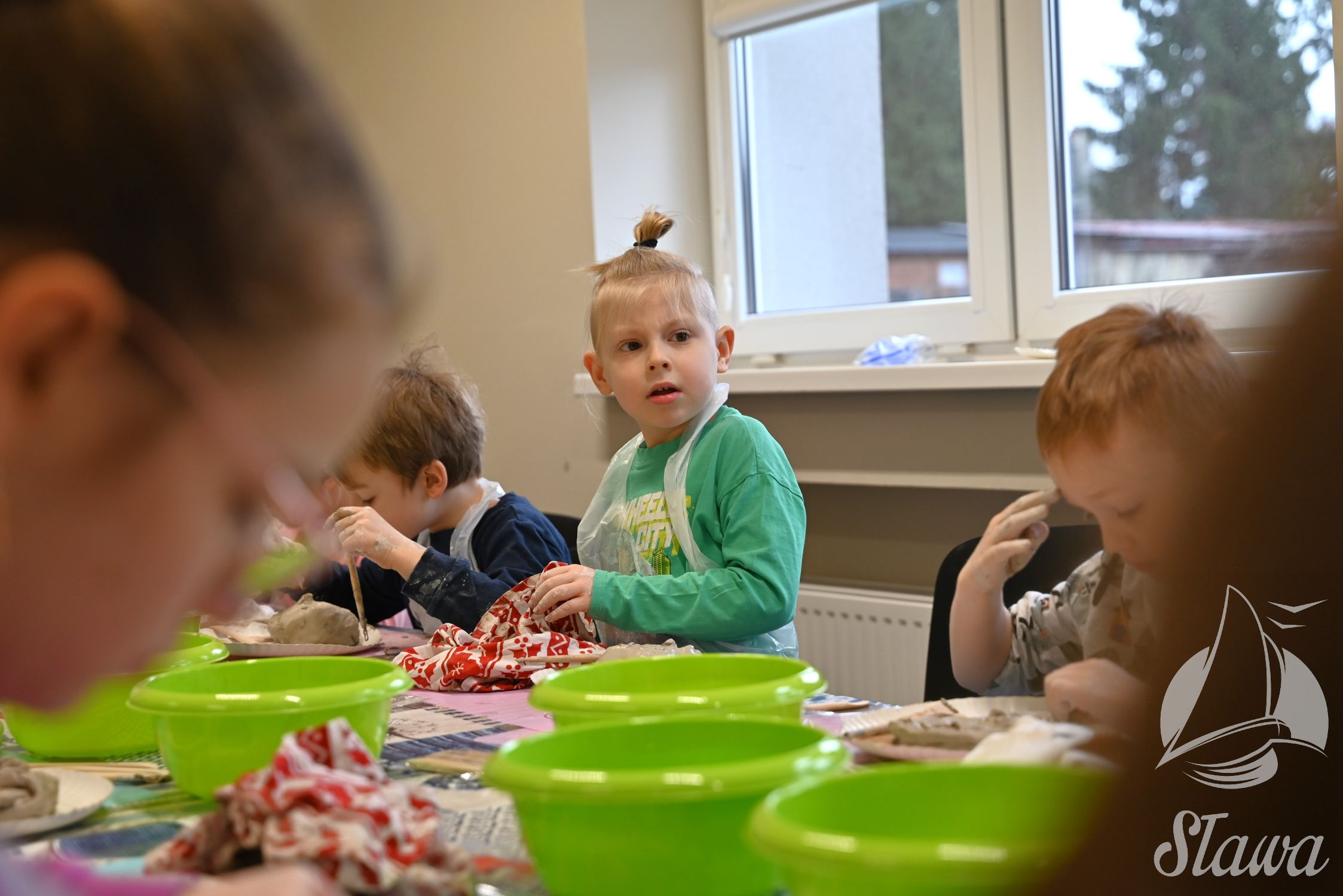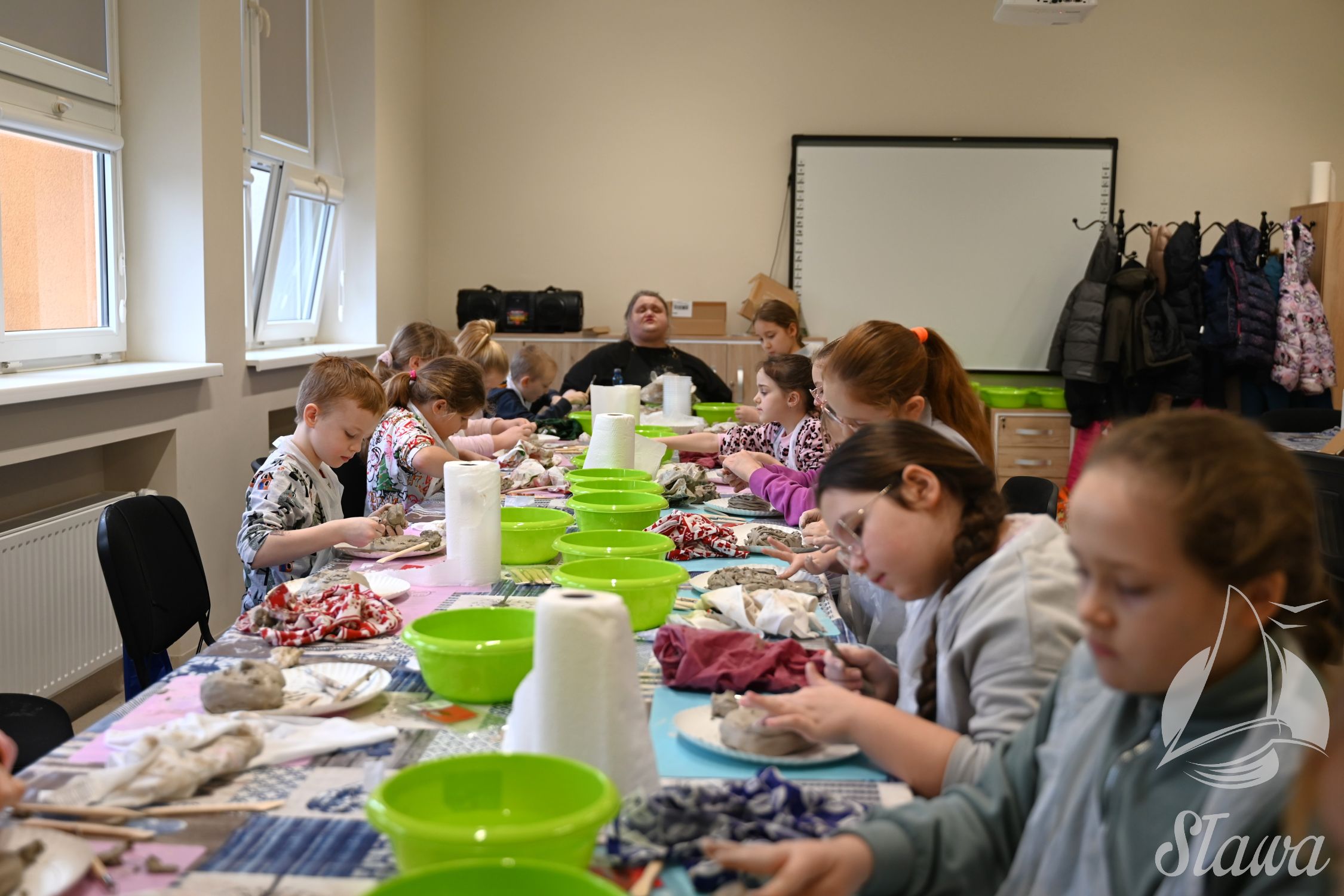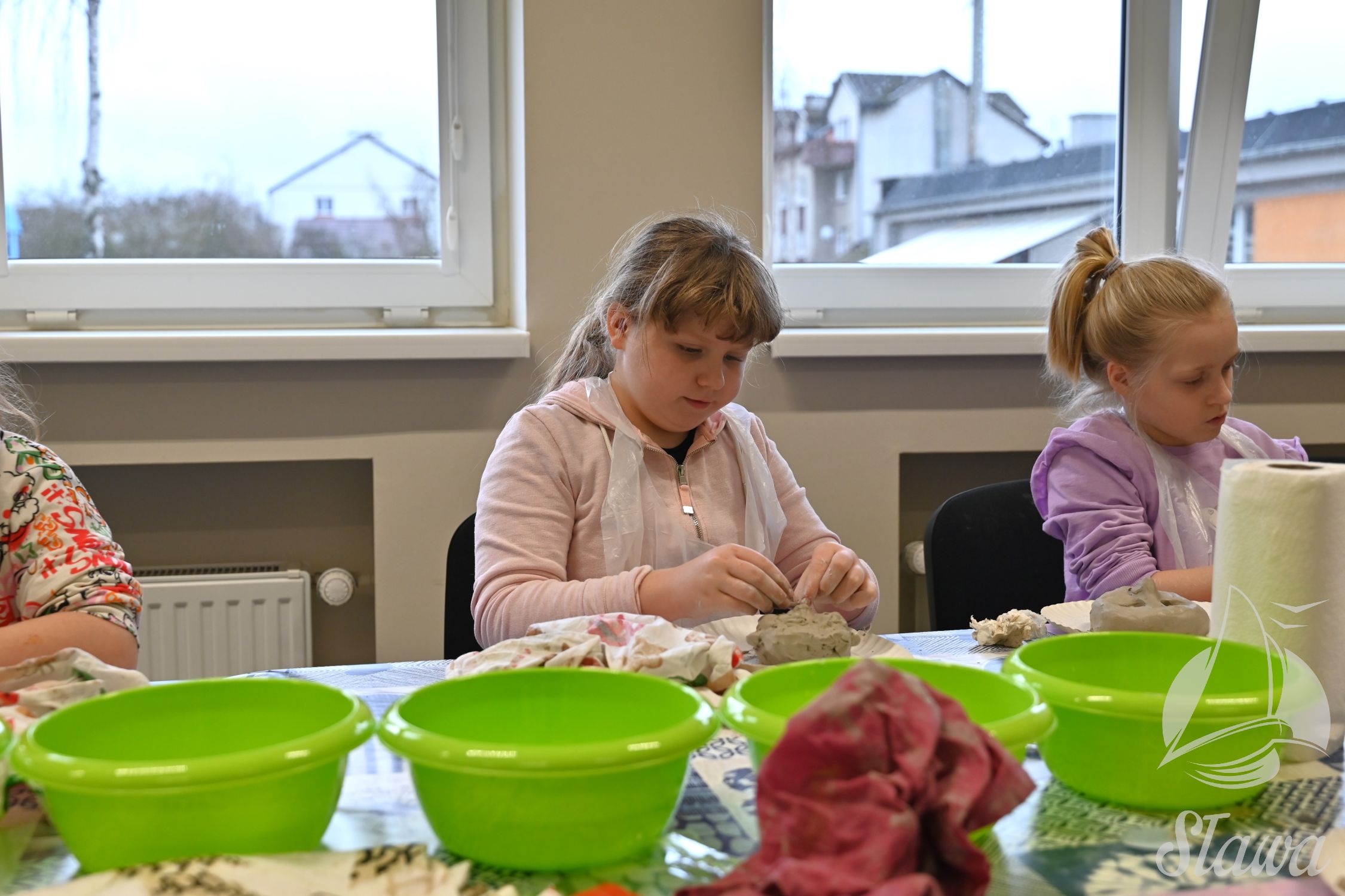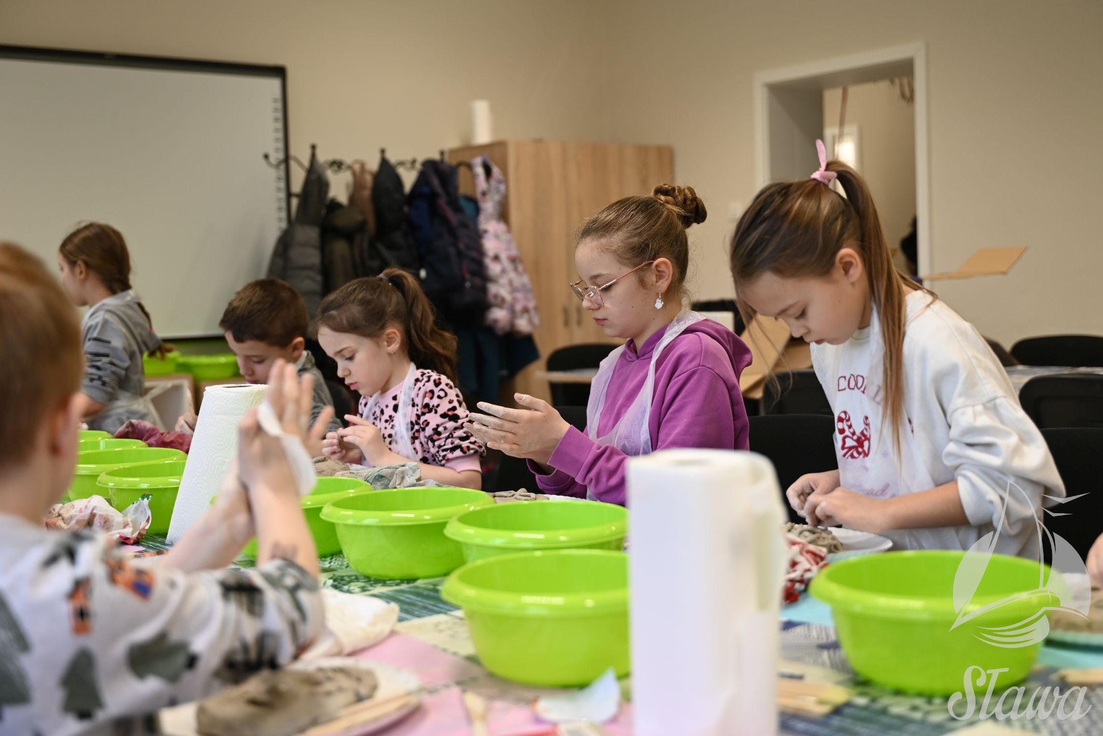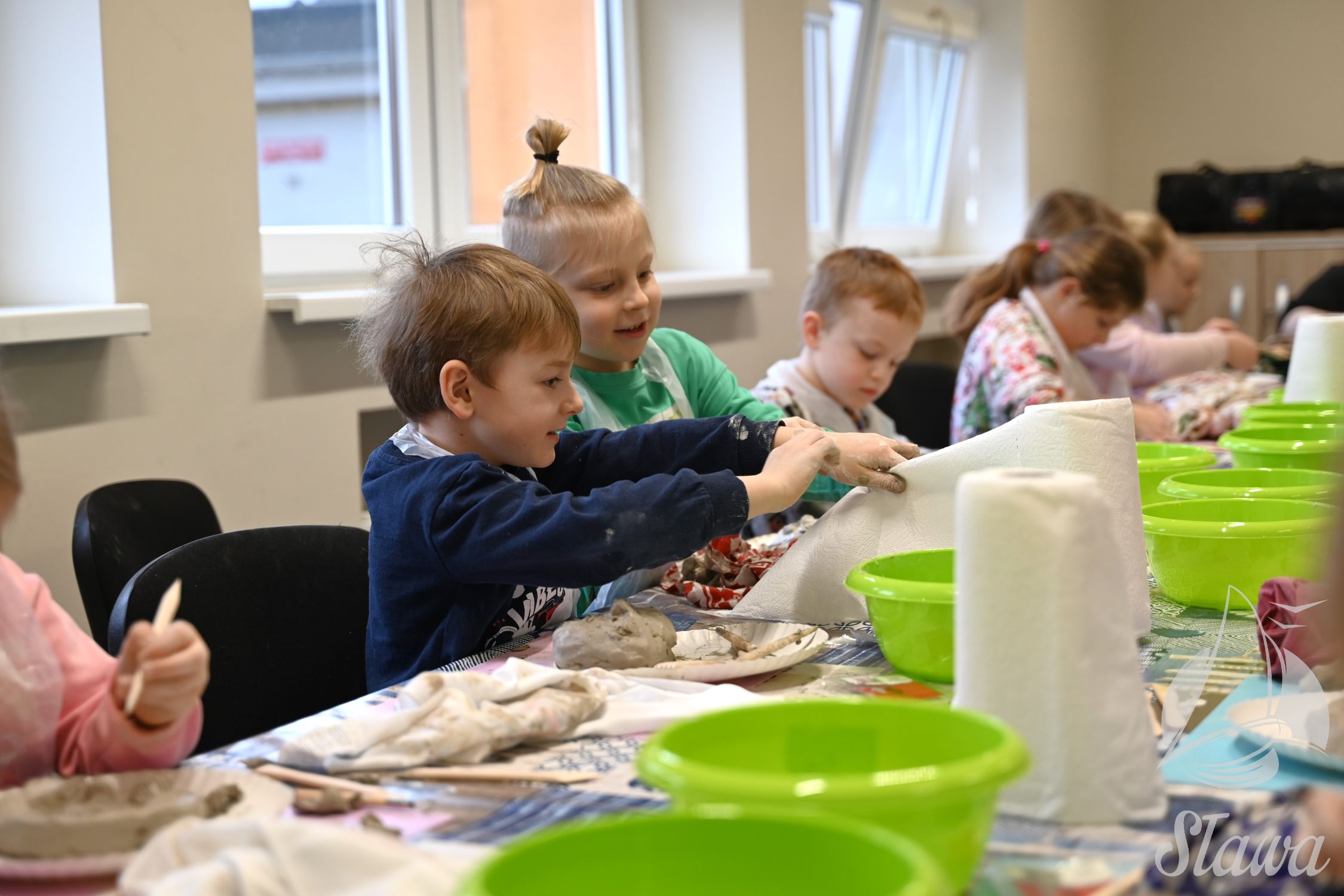 Kolejny dzień ferii przyniósł nowe wyzwania w Domu Kultury w Sławie! Dziś dzieci pracowały z gliną. Ich zadaniem było ulepić swoje ulubione postacie z bajek i bohaterów. Było przy tym dużo śmiechu, zabawy i pracy. Każdy starał się, żeby jego figurka wyszła jak najlepiej.