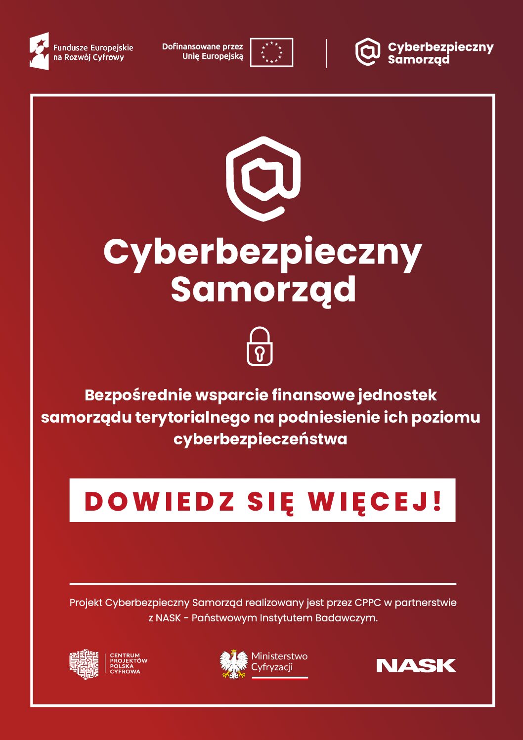 Projekt jest realizowany w ramach FUNDUSZY EUROPEJSKICH NA ROZWÓJ CYFROWY 2021-2027 (FERC) Priorytet II: Zaawansowane usługi cyfrowe, Działanie 2.2 – Wzmocnienie krajowego systemu cyberbezpieczeństwa. Projekt jest realizowany poprzez działania o charakterze organizacyjnym, kompetencyjnym i technicznym.