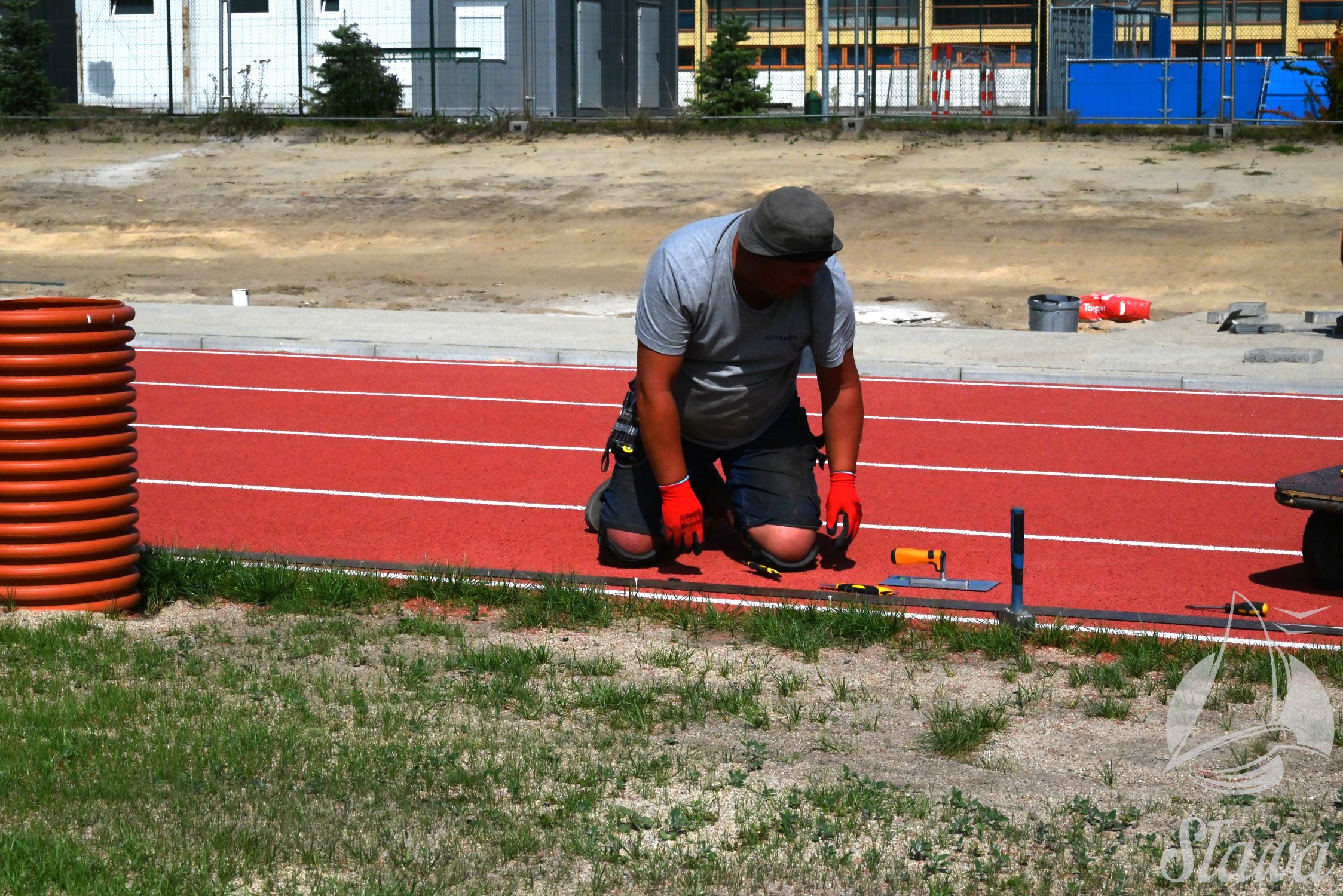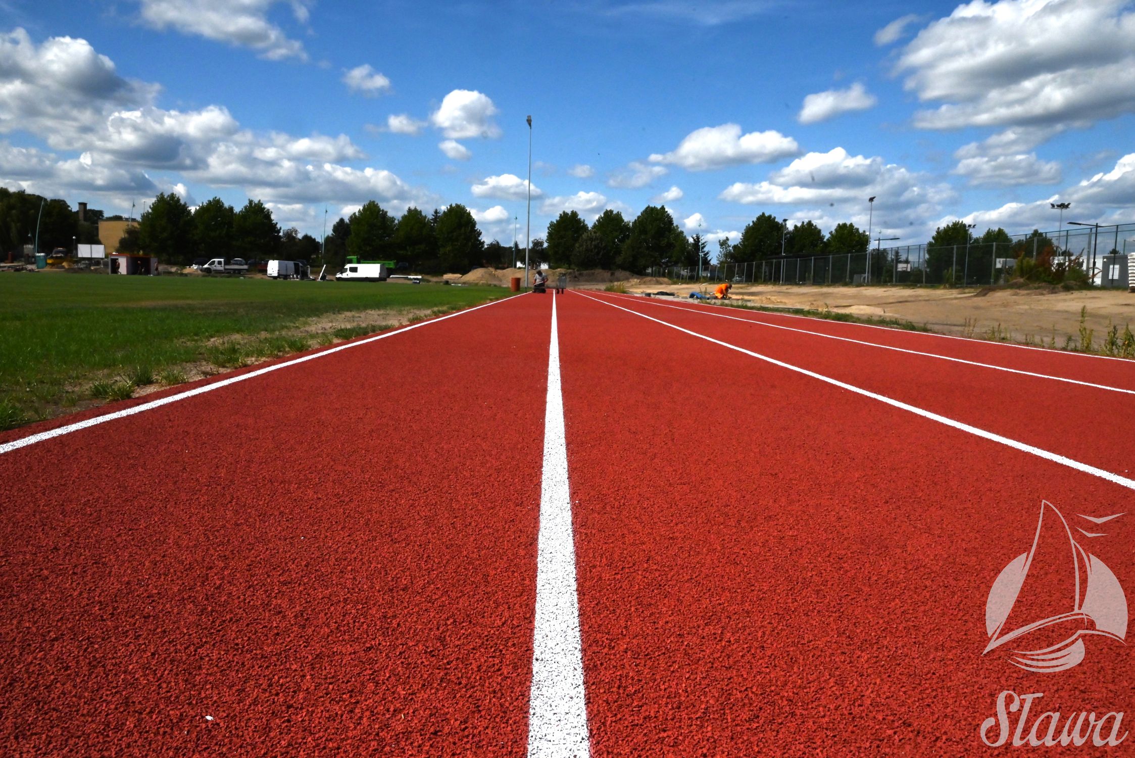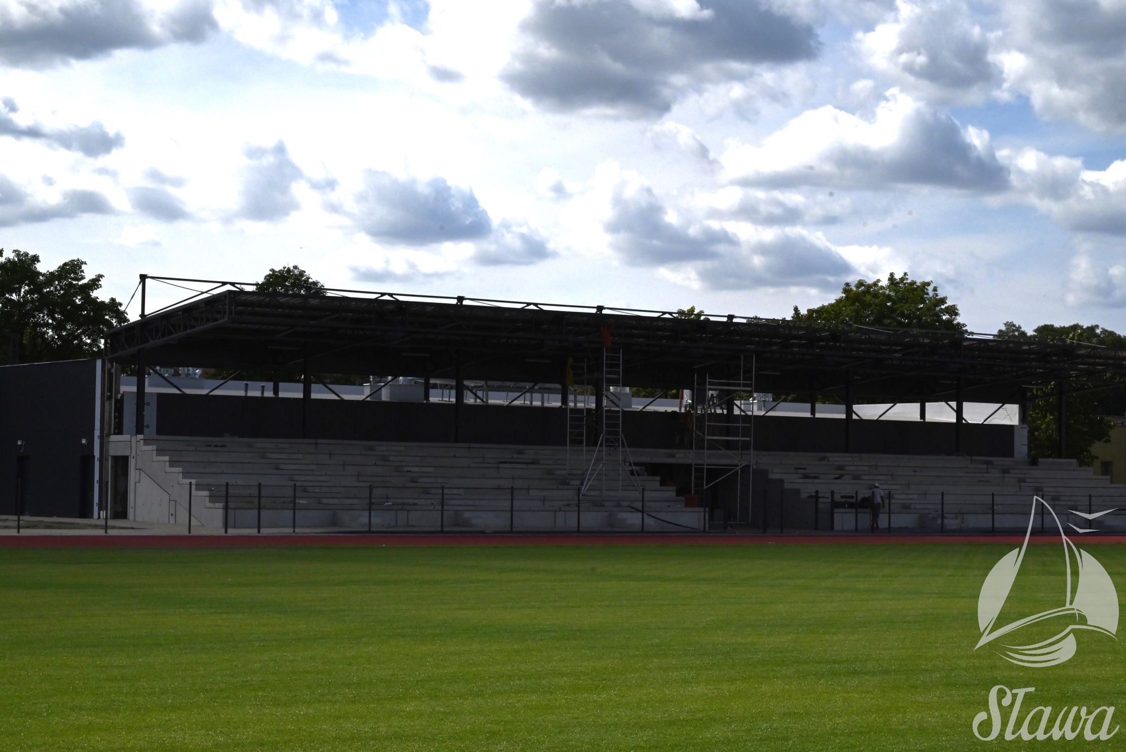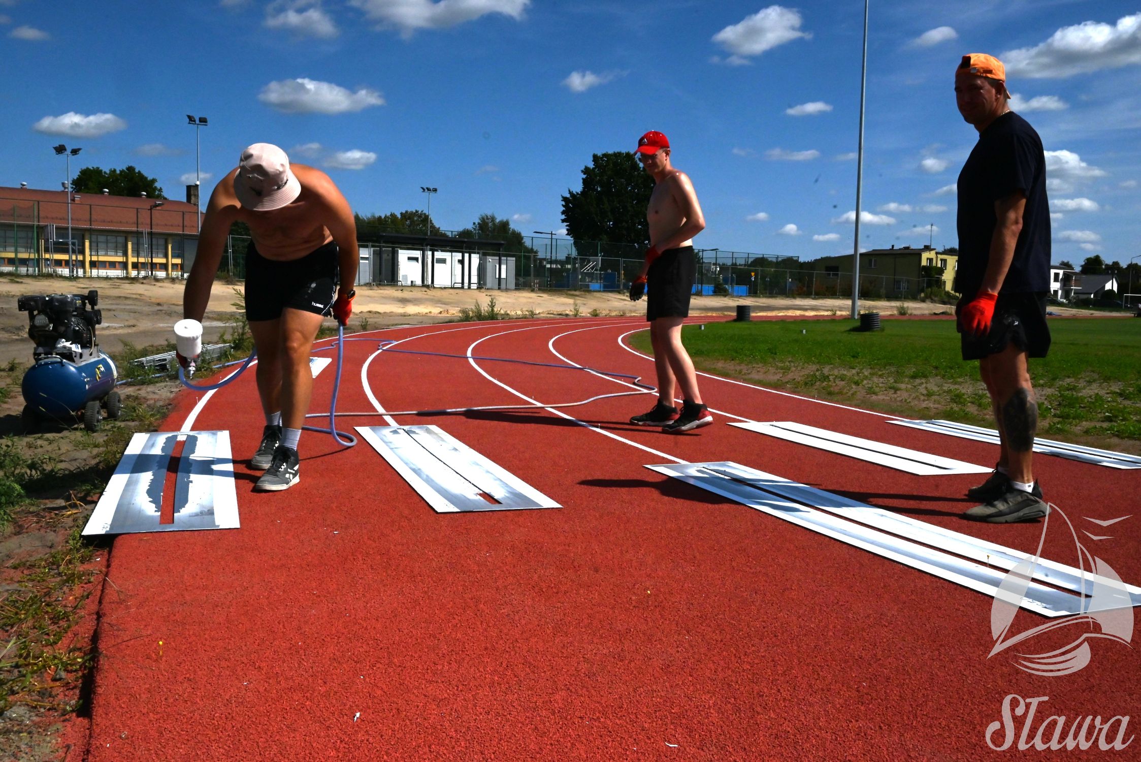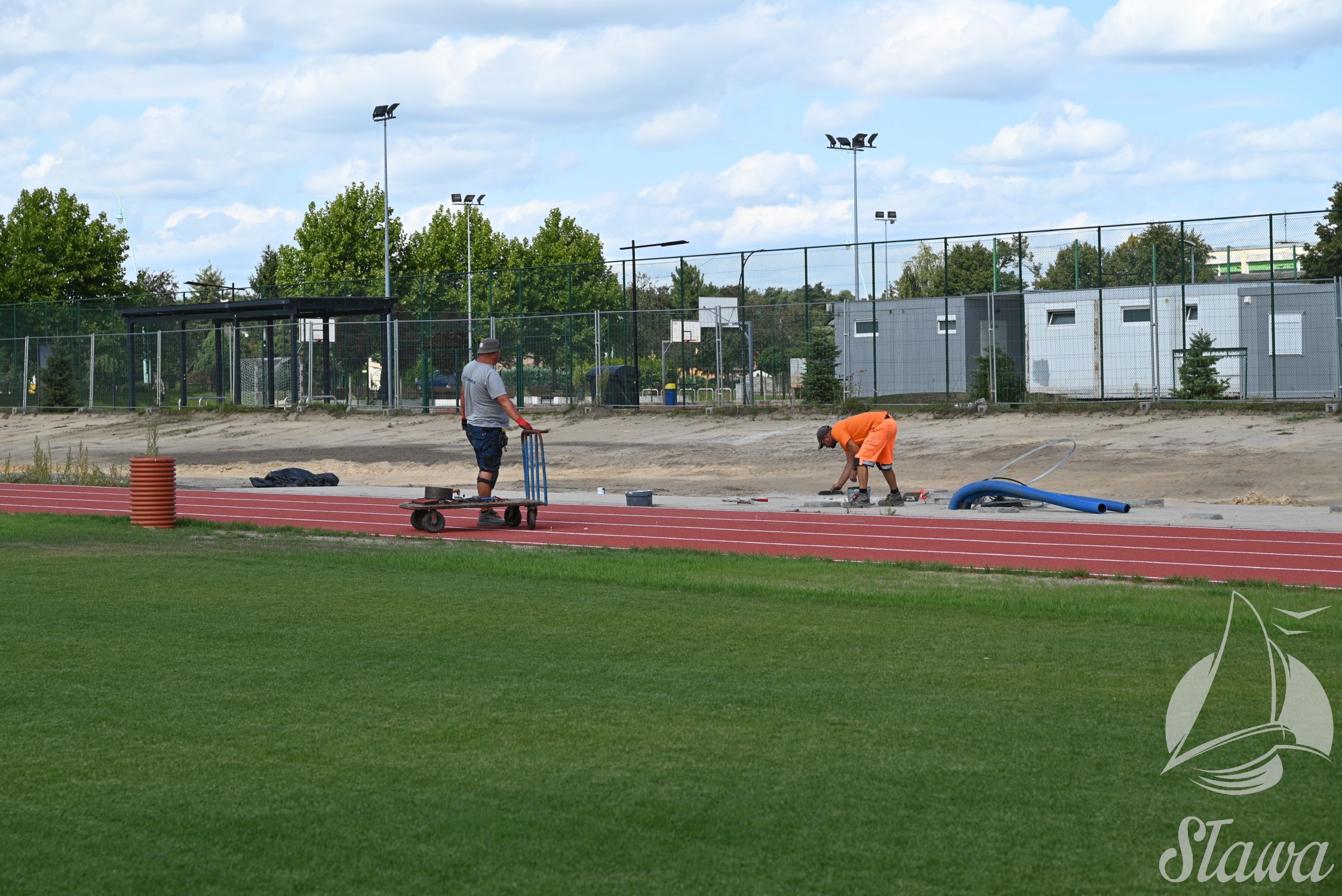Na Stadionie Miejskim im. Zbigniewa Gołembskiego w Sławie prowadzone są prace wykończeniowe. Na bieżni lekkoatletycznej wykonywane jest oznakowanie linii, a na budynku instalowane jest nagłośnienie. Równolegle realizowane są roboty elewacyjne oraz prace porządkowe w otoczeniu obiektu. Trwa demontaż istniejącego ogrodzenia, które zostanie zastąpione nową konstrukcją. We wnętrzach budynku prowadzony jest montaż mebli.