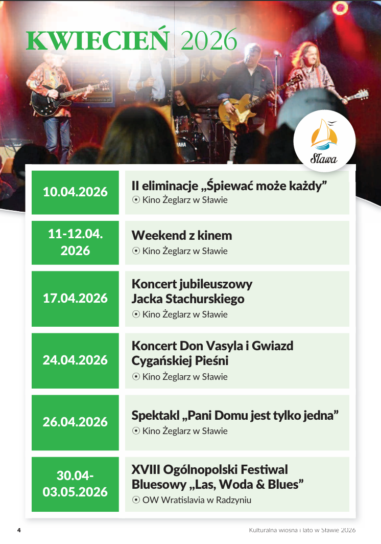 – 30.04-03.05 – XVIII Ogólnopolski Festiwal Bluesowy „Las, Woda & Blues”