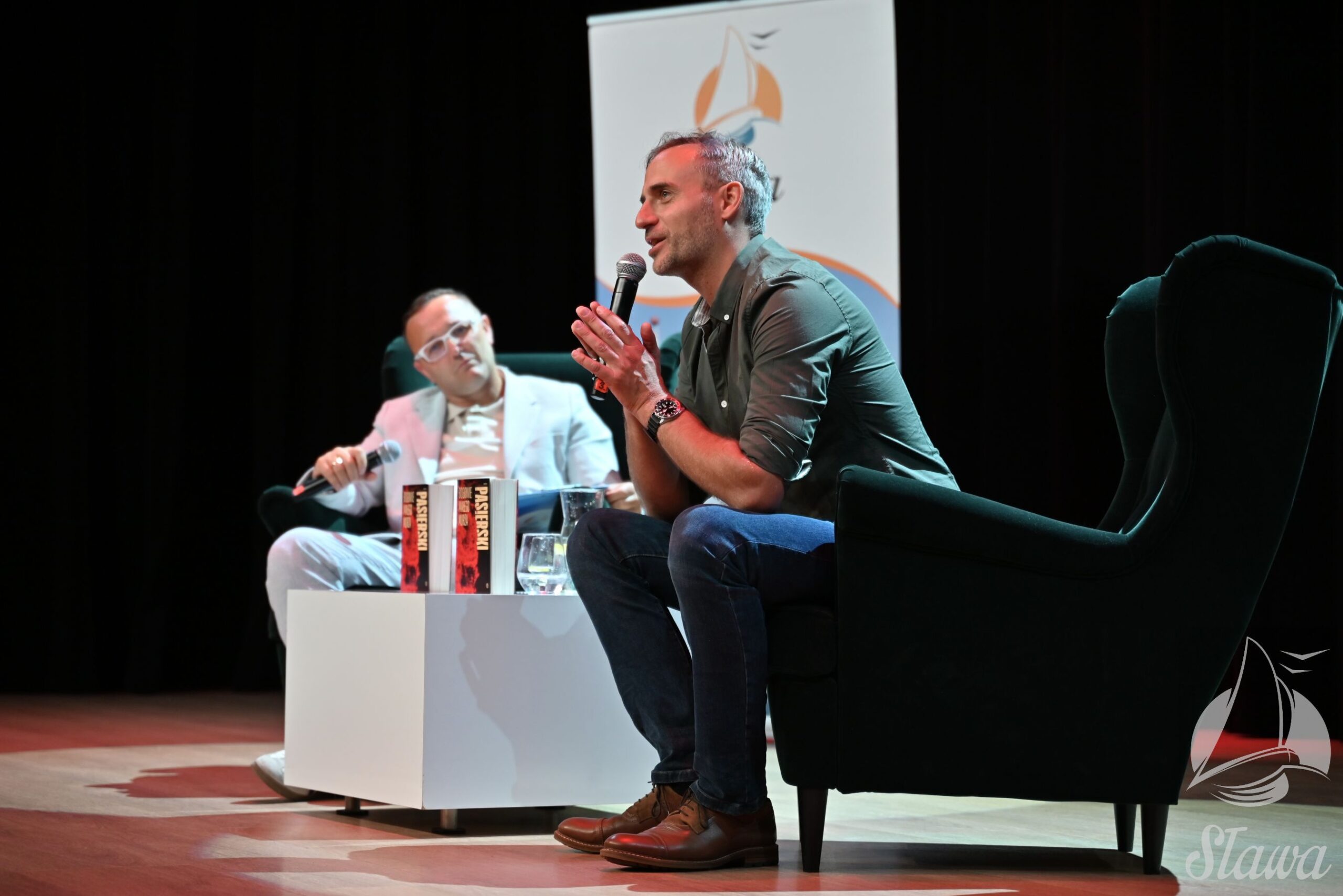 Wczoraj wieczorem w ramach preinauguracji Dni Sławy w Kinie Żeglarz odbyło się spotkanie autorskie z Jędrzejem Pasierskim, autorem kryminału “Bogowie Małego Morza”, którego akcja odbywa się w Sławie. Autor opowiedział o swojej książce i inspiracjach, jakie towarzyszyły mu podczas pisania. Rozmowę z twórcą poprowadził Dyrektor Sławskiego Centrum Kultury i Wypoczynku Tomasz Krzymiński. Ponad dwugodzinne spotkanie przyciągnęło do Kina Żeglarz ponad 50 osób.