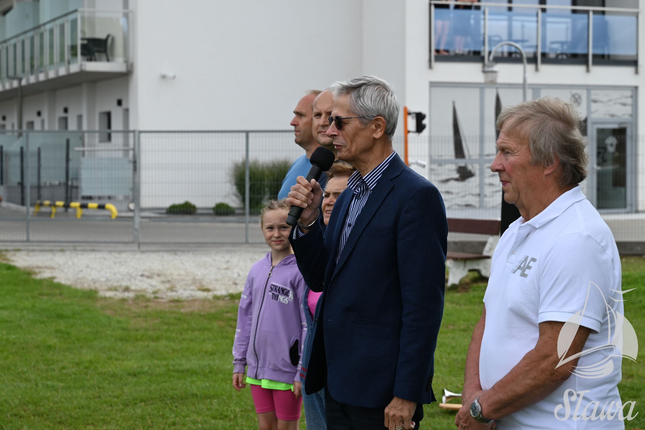 Komandor LKŻ przywitał zgromadzonych uczestników i gości, dziękując za wieloletnią, owocną współpracę gminie Sława oraz za wsparcie udzielane klubowi. Podkreślił także znaczenie regat dla środowiska żeglarskiego i lokalnej społeczności. W imieniu władz samorządowych głos zabrał Zastępca Burmistrza Sławy Krzysztof Gruszewski. W swoim wystąpieniu zwrócił uwagę na rolę, jaką tego typu wydarzenia odgrywają w promocji Jeziora Sławskiego oraz całej Gminy. Życzył uczestnikom pomyślnych wiatrów, sportowej rywalizacji na najwyższym poziomie, dobrej zabawy oraz bezpiecznego żeglowania.