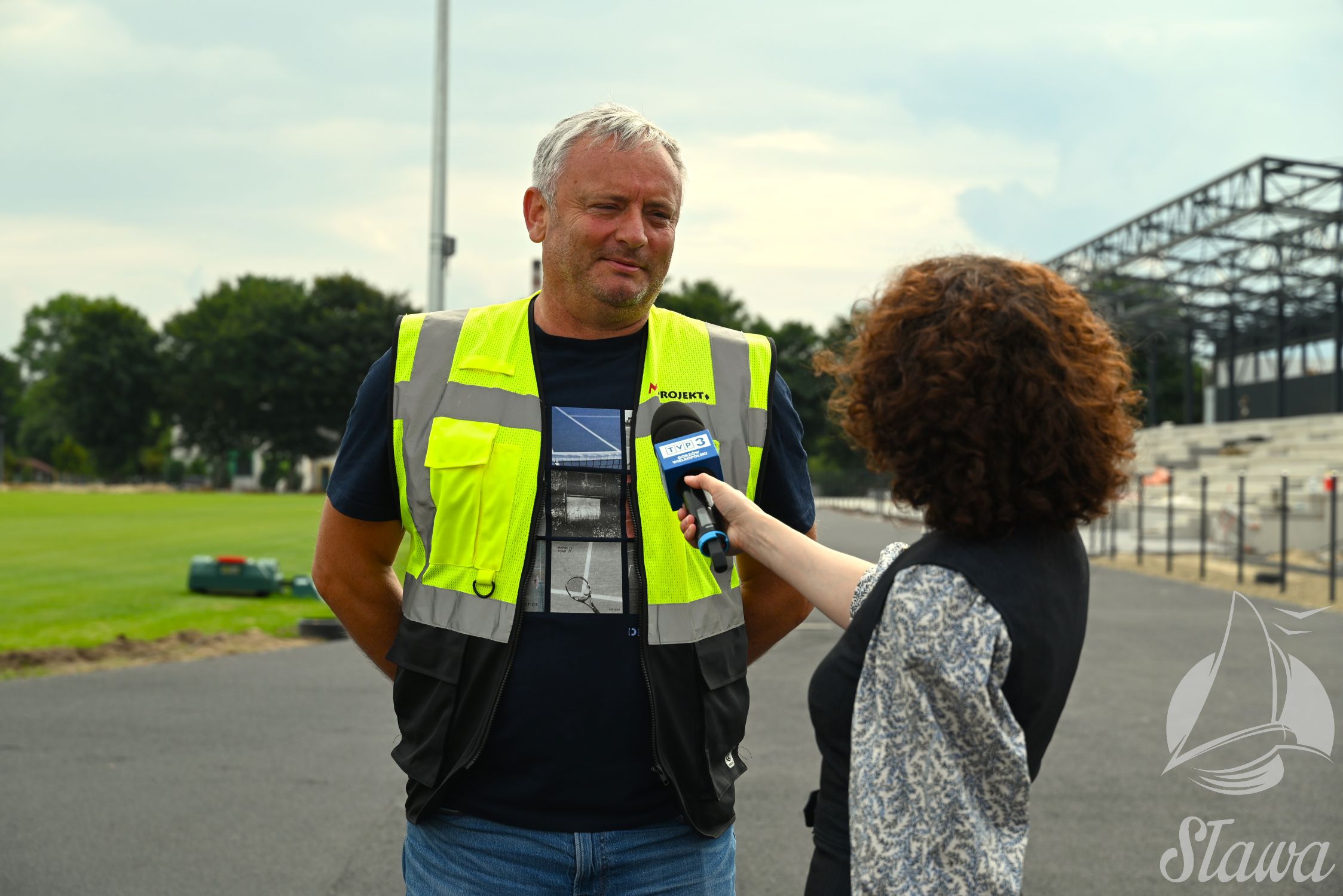 Dziennikarze przeprowadzili krótkie wywiady z Zastępcą Burmistrza Sławy Krzysztofem Gruszewskim, Dyrektorem SCKiW Tomaszem Krzymińskim oraz kierownikiem Referatu Techniczno- Inwestycyjnego Markiem Wróblem i Kierownikiem Budowy sławskiego stadionu Adamem Jarasem. Przygotowali materiał z różnych miejsc naszego miasta, w którym zostaną pokazane m.in. najnowsze inwestycje. Całość będzie można obejrzeć już w niedzielę o 18:30 w programie “Informacje Lubuskie”, który nadawany będzie prosto ze Sławy!