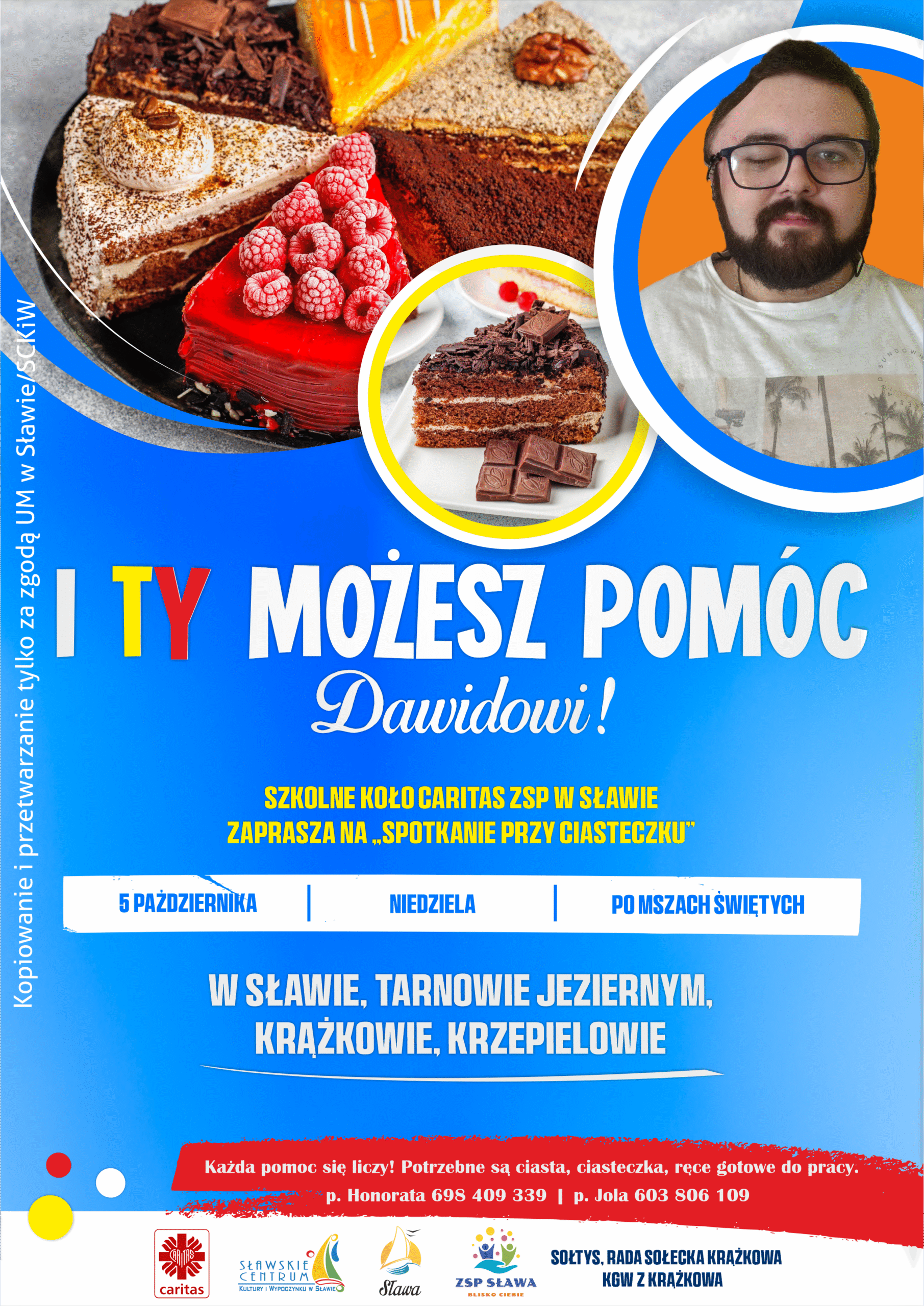 Szkolne Koło Caritas ZSP w Sławie zaprasza wszystkich mieszkańców do udziału w akcji „Spotkanie przy ciasteczku”, której celem jest zebranie środków na leczenie Dawida.