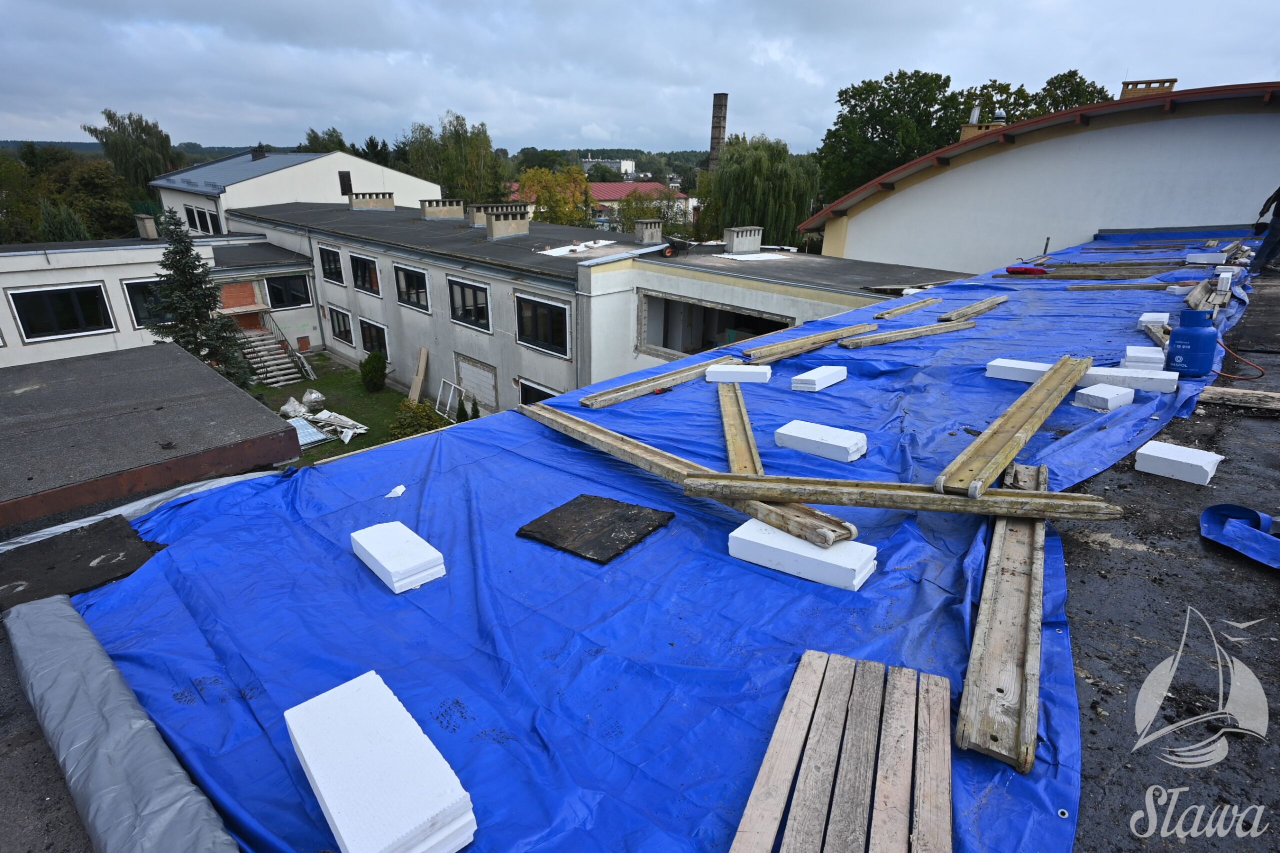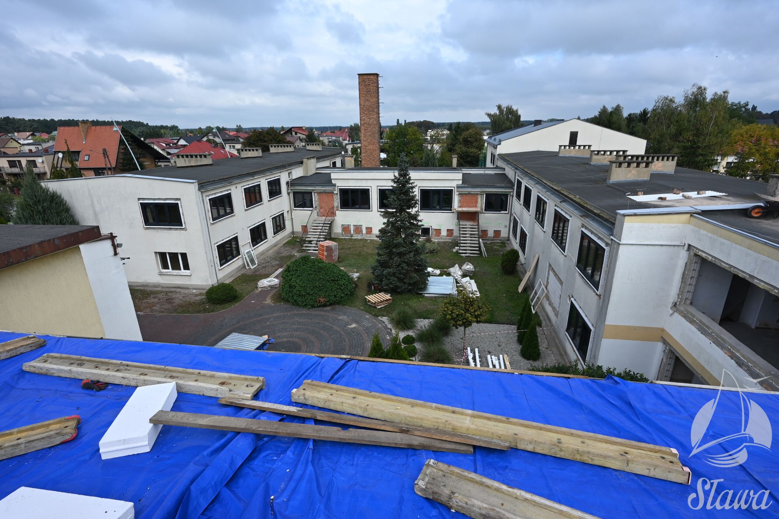 Wczoraj w obiektach Szkoła Podstawowa im. Franciszka Niewidziajły w Sławie oraz Zespół Szkół Ponadpodstawowych w Sławie przy ul. Ogrodowej odbyła się rada budowy, podczas której omówiono postęp prac, a także plan działania na najbliższe tygodnie. Inwestycja pn. „Termomodernizacja budynków: Szkoły Podstawowej, Zespołu Szkół Ponadpodstawowych oraz hali widowiskowo-sportowej w Sławie wraz z modernizacją źródeł ciepła” postępuje z dnia na dzień i mamy już widoczne efekty. Większa część klas ma już wymienioną stolarkę okienną wraz z ciepłym montażem. Trwa także usuwanie kilku warstw starej papy, które w najbliższym czasie zostaną zastąpione nowym pokryciem wraz z termoizolacją.