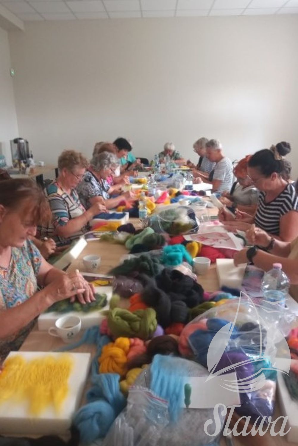 Dziś uczestnicy projektu „Sławskie inspiracje” wzięli udział w warsztatach Hand Made, które odbyły się w Domu Kultury w Sławie. Podczas spotkania uczestnicy poznali podstawowe techniki rękodzielnicze w tym filcowanie, dzięki którym mogli samodzielnie wykonywać ozdoby – zakładki do książek. Na wszystkich uczestników czekał również słodki poczęstunek oraz napoje.