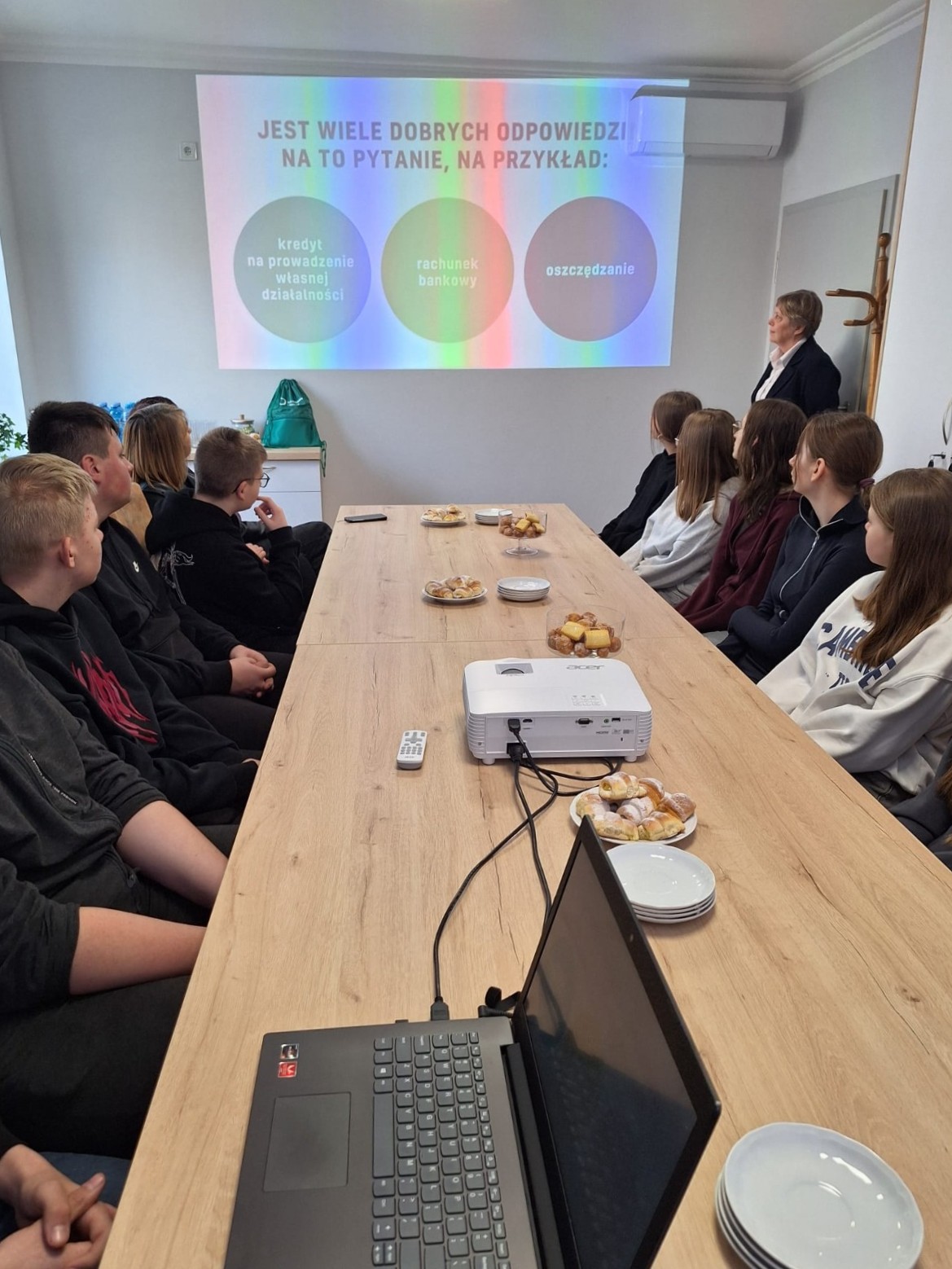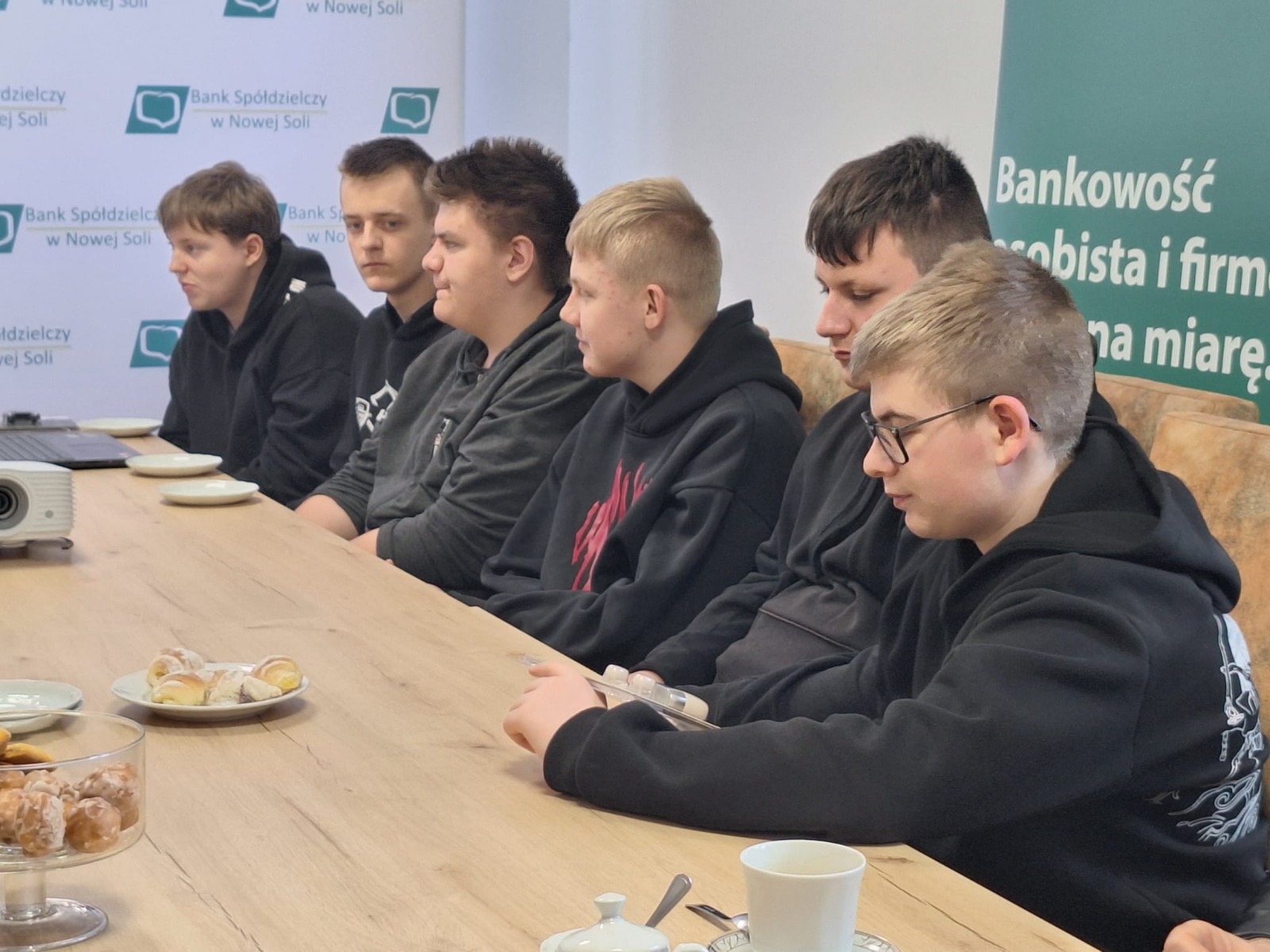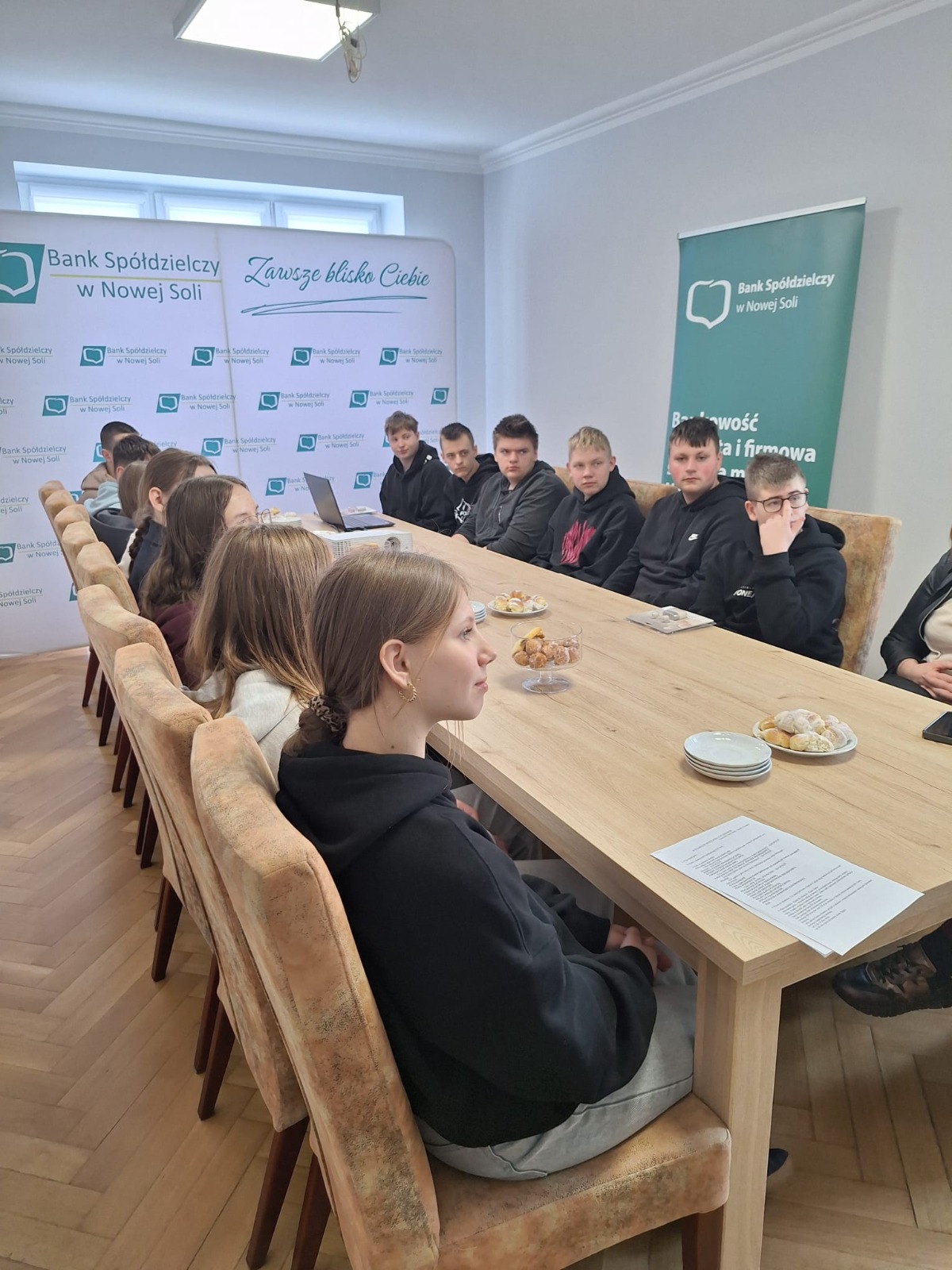 Podczas wizyty nie zabrakło także czasu na rozmowę i pytania ze strony uczniów. Na uczestników czekał również słodki poczęstunek oraz konkurs wiedzy o pieniądzach z nagrodami, który wzbudził duże zainteresowanie i dostarczył wielu emocji. Uczniowie wraz z wychowawcą składają serdeczne podziękowania pracownikom Banku Spółdzielczego w Nowej Soli za gościnność, upominki, poświęcony czas oraz przygotowanie inspirującej lekcji praktycznej wiedzy o finansach.