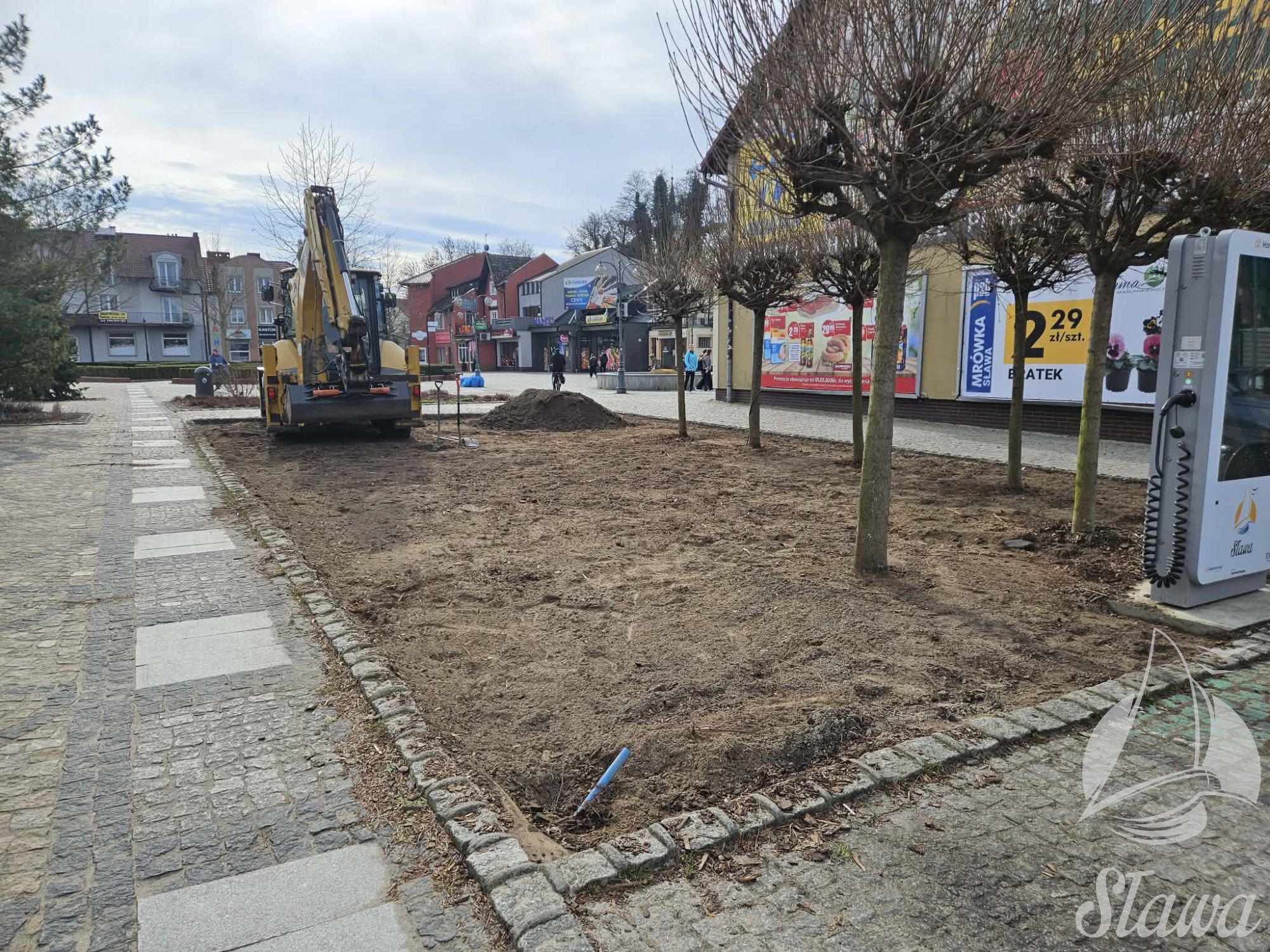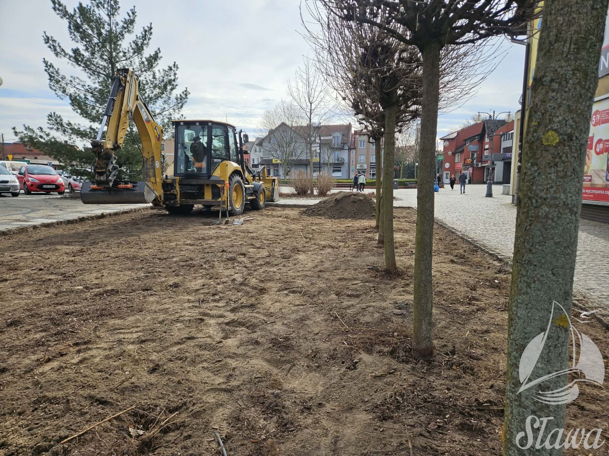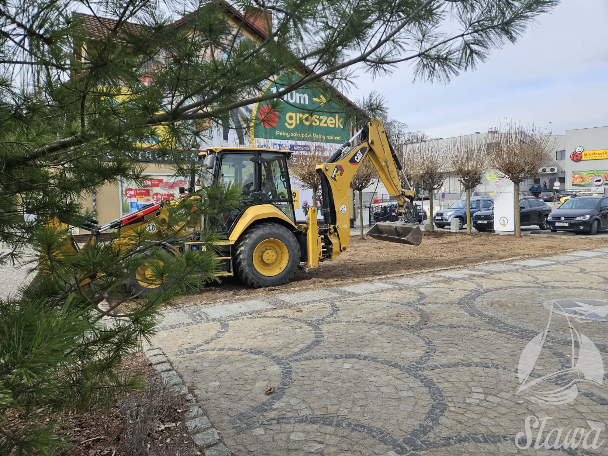 Obecnie na Nowym Rynku trwają intensywne prace ziemne. Pracownicy gospodarczy urzędu miejskiego, przy wykorzystaniu ciężkiego sprzętu, przygotowują teren pod nowe nasadzenia. Pierwszym etapem zadania było usunięcie starej, nieestetycznej roślinności, która przestała pełnić funkcję ozdobną. W miejscu dotychczasowego zieleńca powstanie nowa, uporządkowana przestrzeń. Plan nasadzeń przewiduje: wprowadzenie różnorodnych gatunków roślin zielonych i zastosowanie bylin, które zapewnią efektowny wygląd skweru przez wiele sezonów.