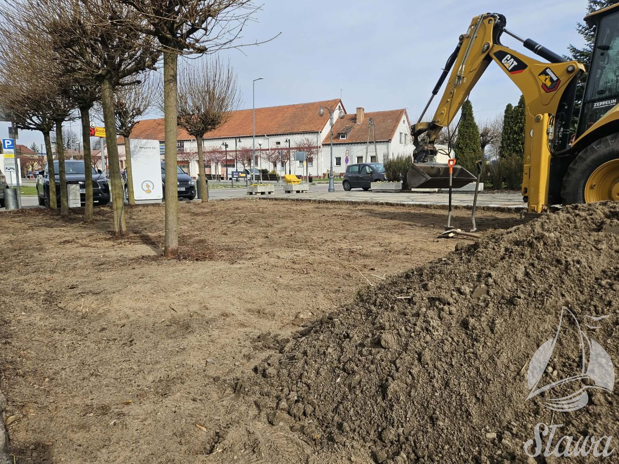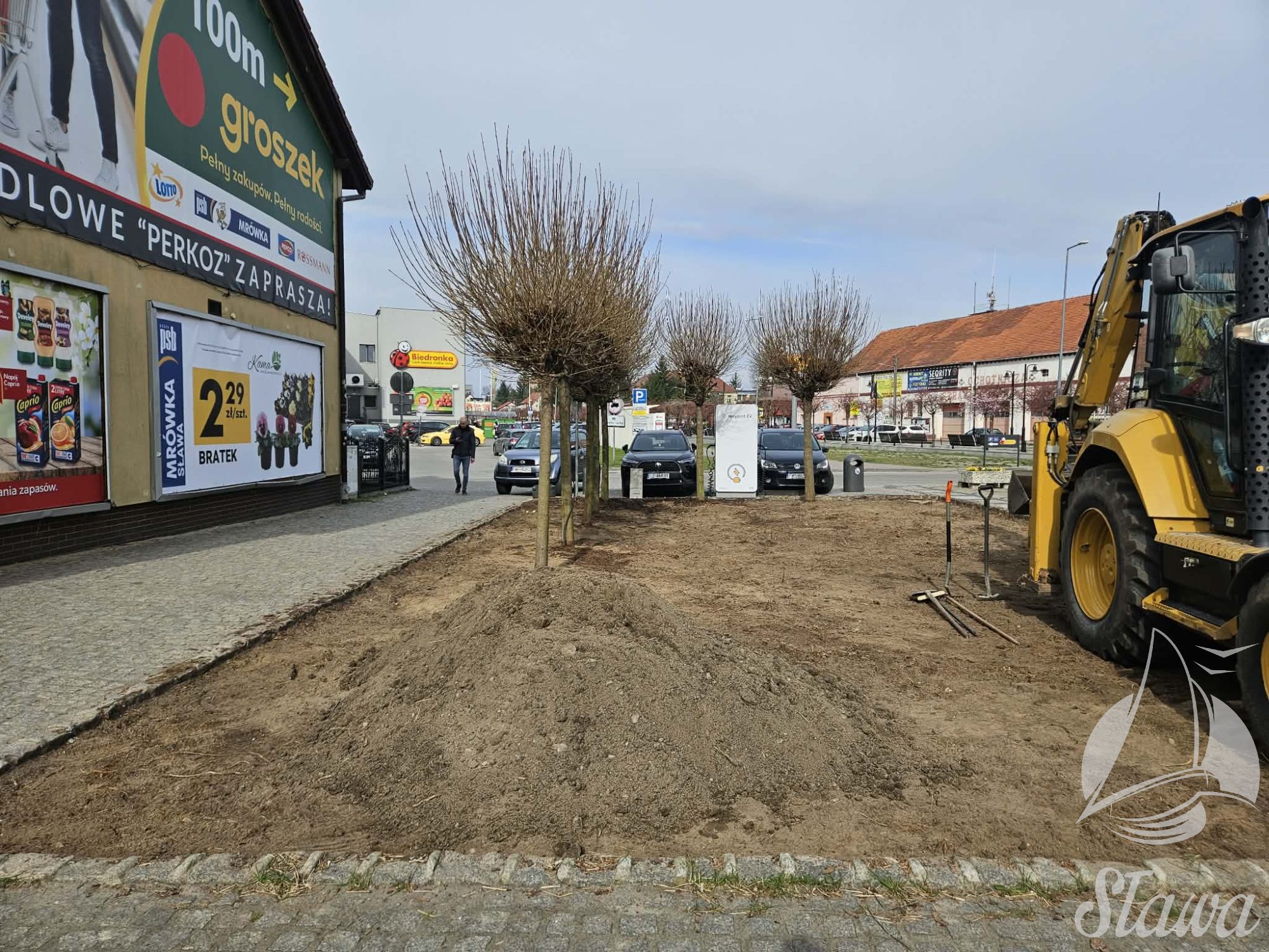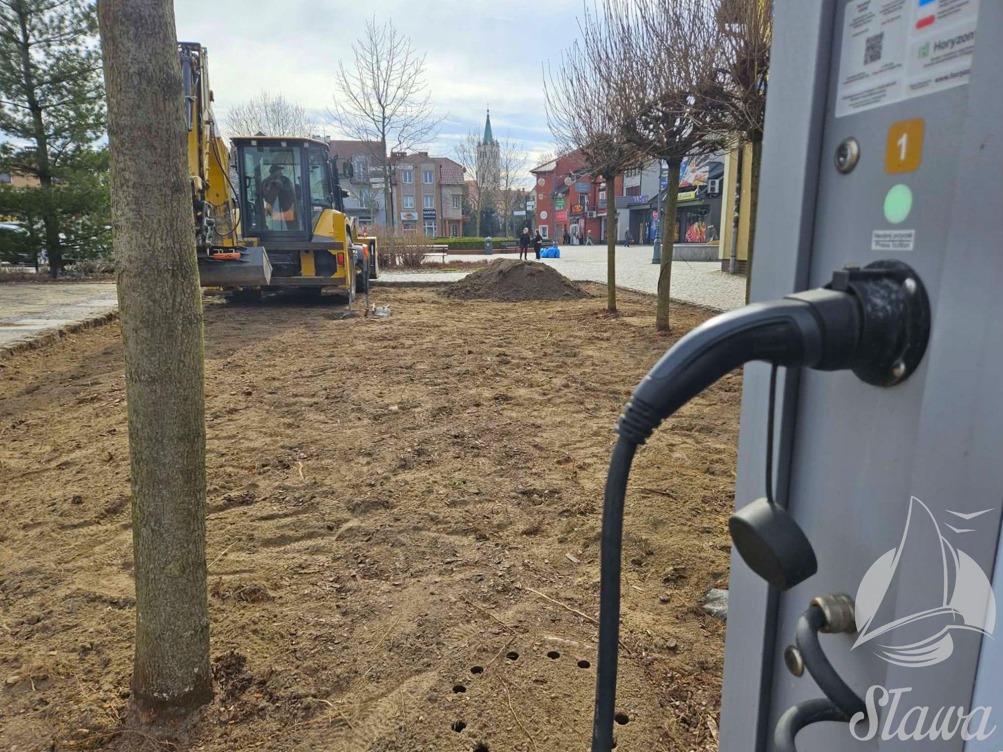 Obecnie na Nowym Rynku trwają intensywne prace ziemne. Pracownicy gospodarczy urzędu miejskiego, przy wykorzystaniu ciężkiego sprzętu, przygotowują teren pod nowe nasadzenia. Pierwszym etapem zadania było usunięcie starej, nieestetycznej roślinności, która przestała pełnić funkcję ozdobną. W miejscu dotychczasowego zieleńca powstanie nowa, uporządkowana przestrzeń. Plan nasadzeń przewiduje: wprowadzenie różnorodnych gatunków roślin zielonych i zastosowanie bylin, które zapewnią efektowny wygląd skweru przez wiele sezonów.